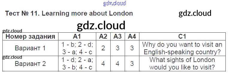 Ответ на задание 11 Контрольно-измерительные материалы (КИМ) Английский язык за 5 (пятый) класс Лысакова, Сахаров, Сухоросова 2017