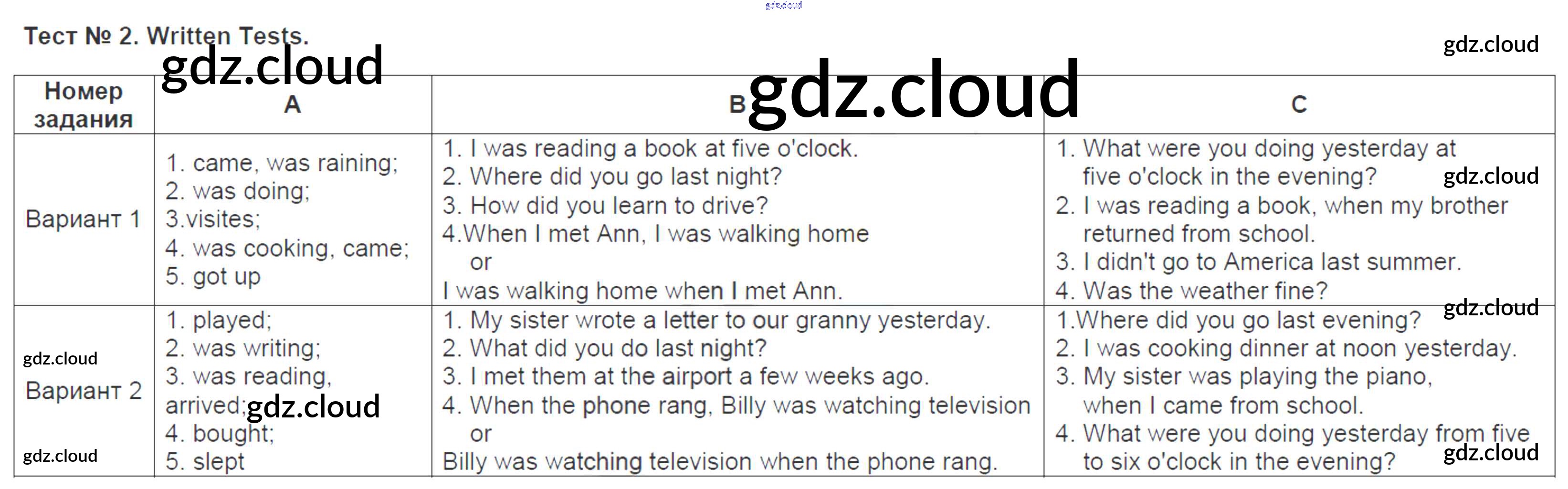 Ответы к Written Tests по Английскому языку 5 класс Контрольно-измерительные материалы (КИМ) Лысакова ВАКО