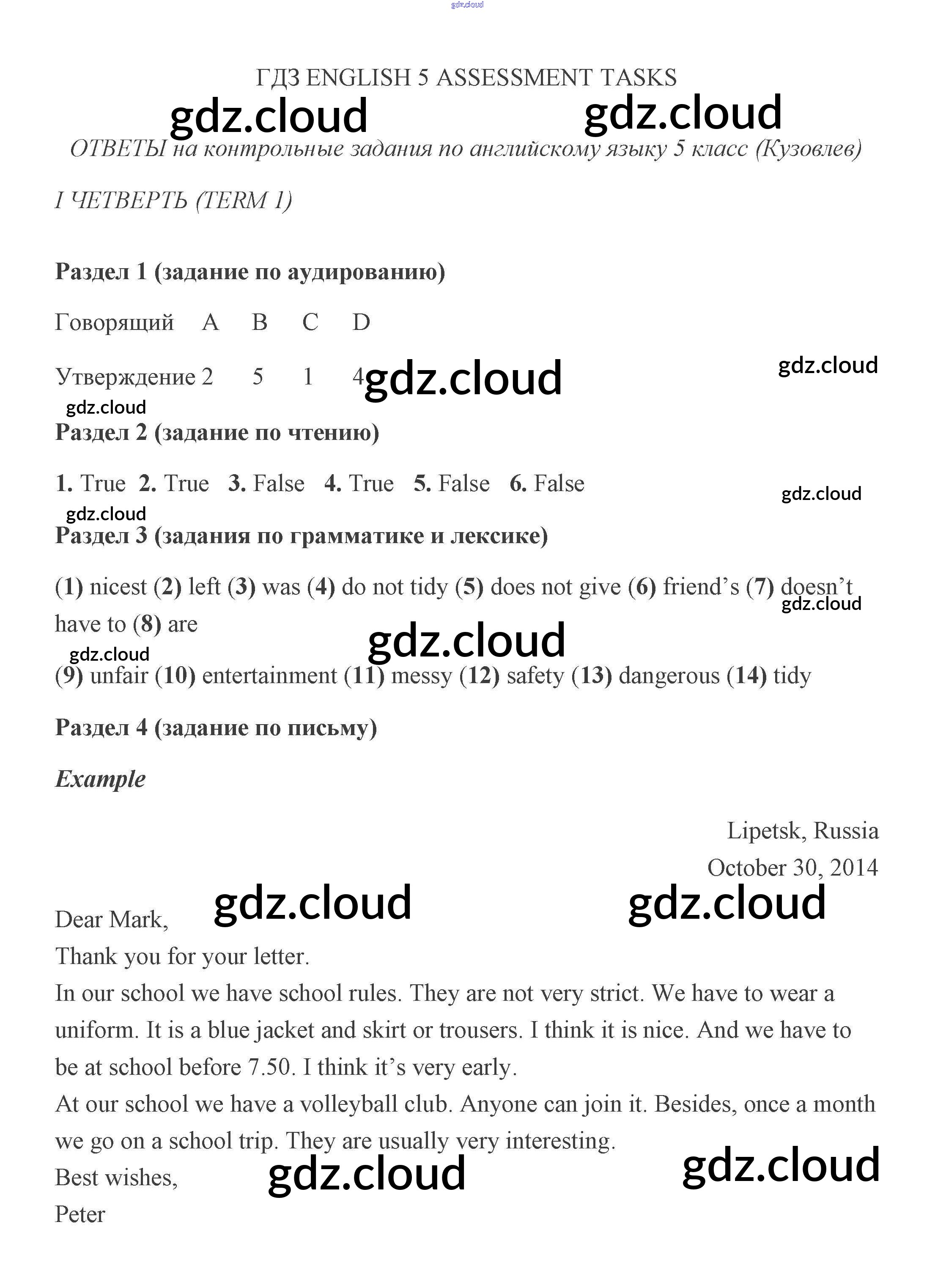 Ответы к Terms по Английскому языку 5 класс Контрольные задания Кузовлев Просвещение