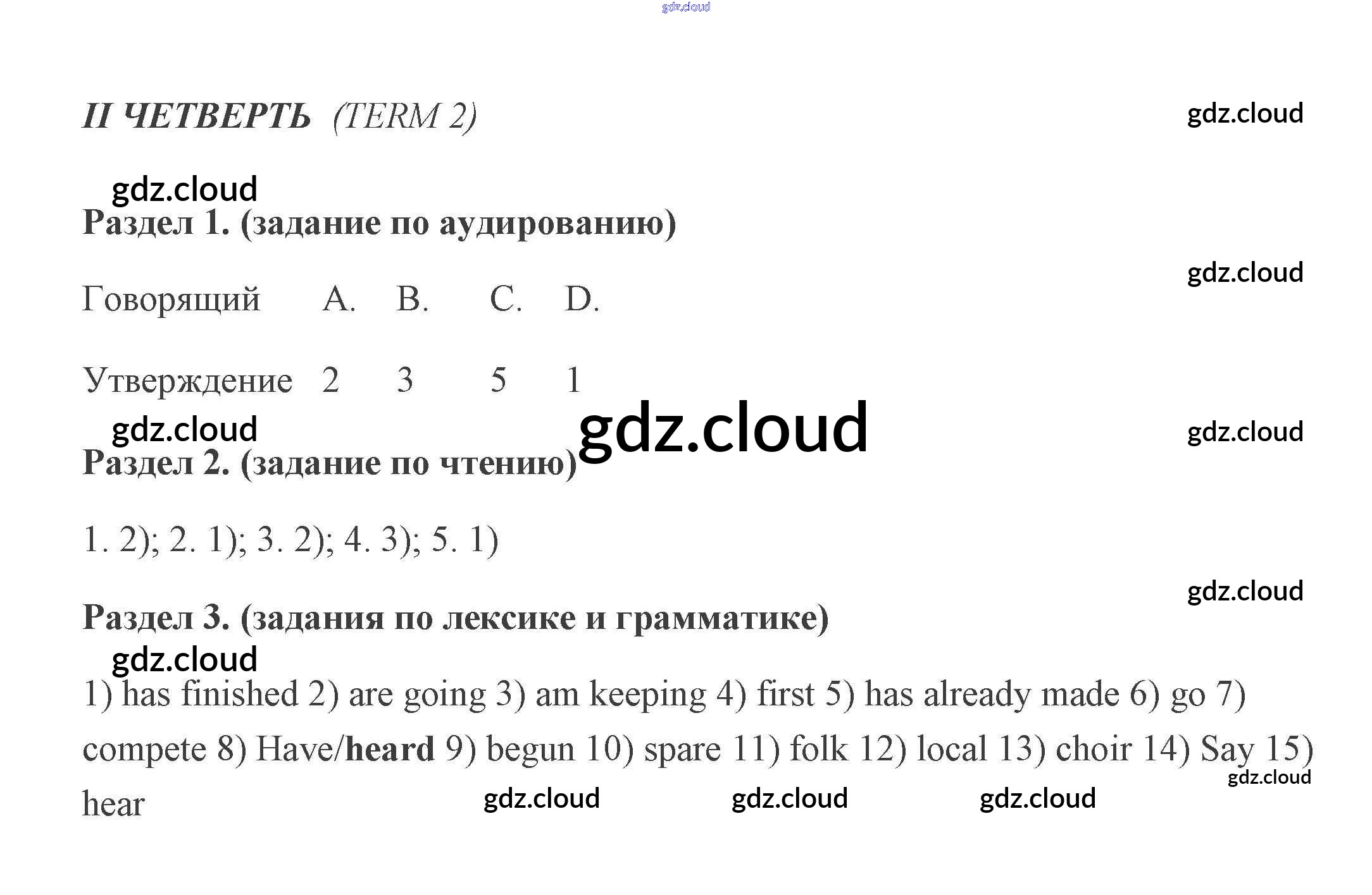 Ответы к Terms по Английскому языку 5 класс Контрольные задания Кузовлев Просвещение