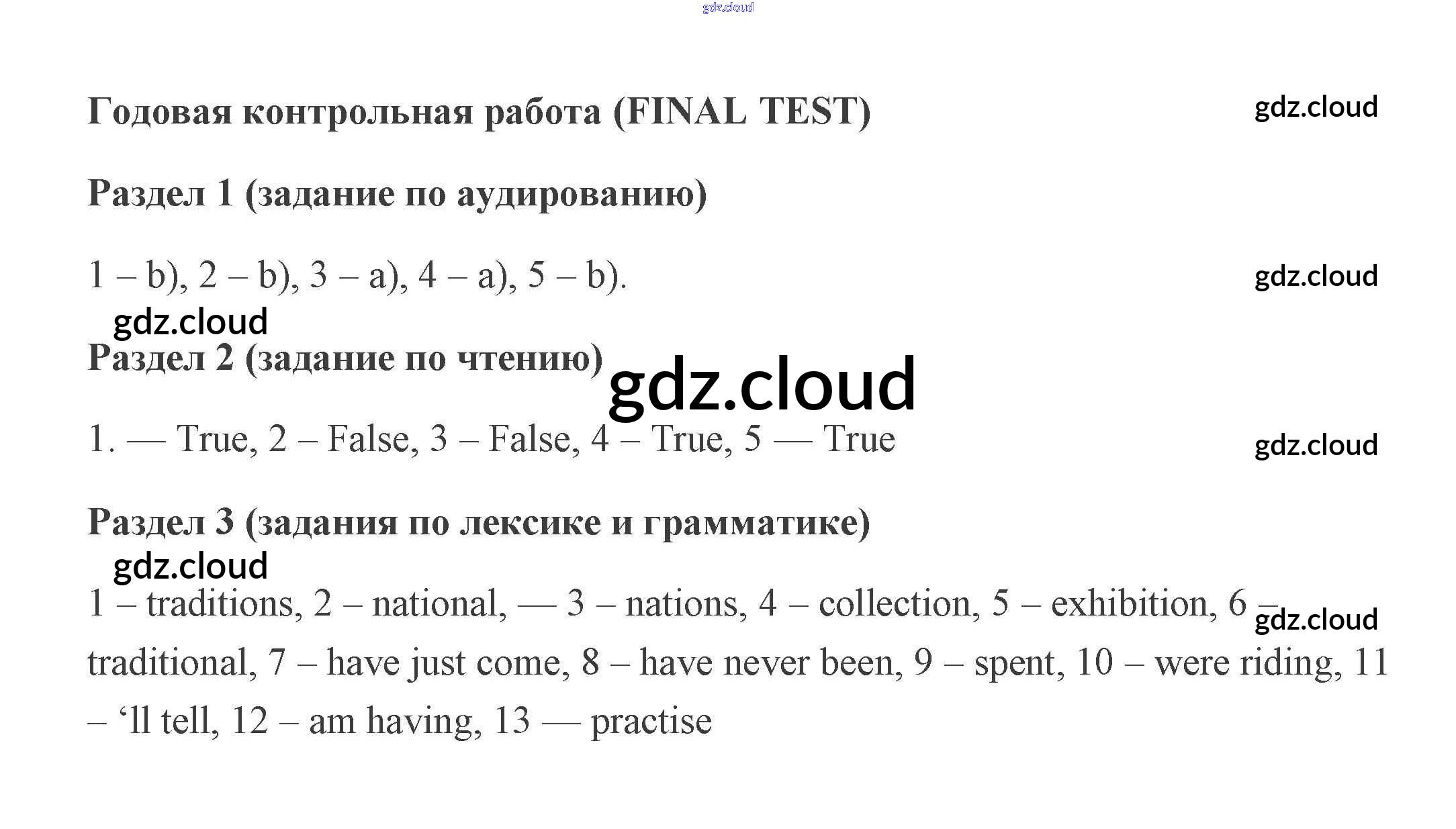 Ответ на задание Final Test Контрольные задания Английский язык за 5 (пятый) класс Кузовлев, Симкин, Лапа 2019