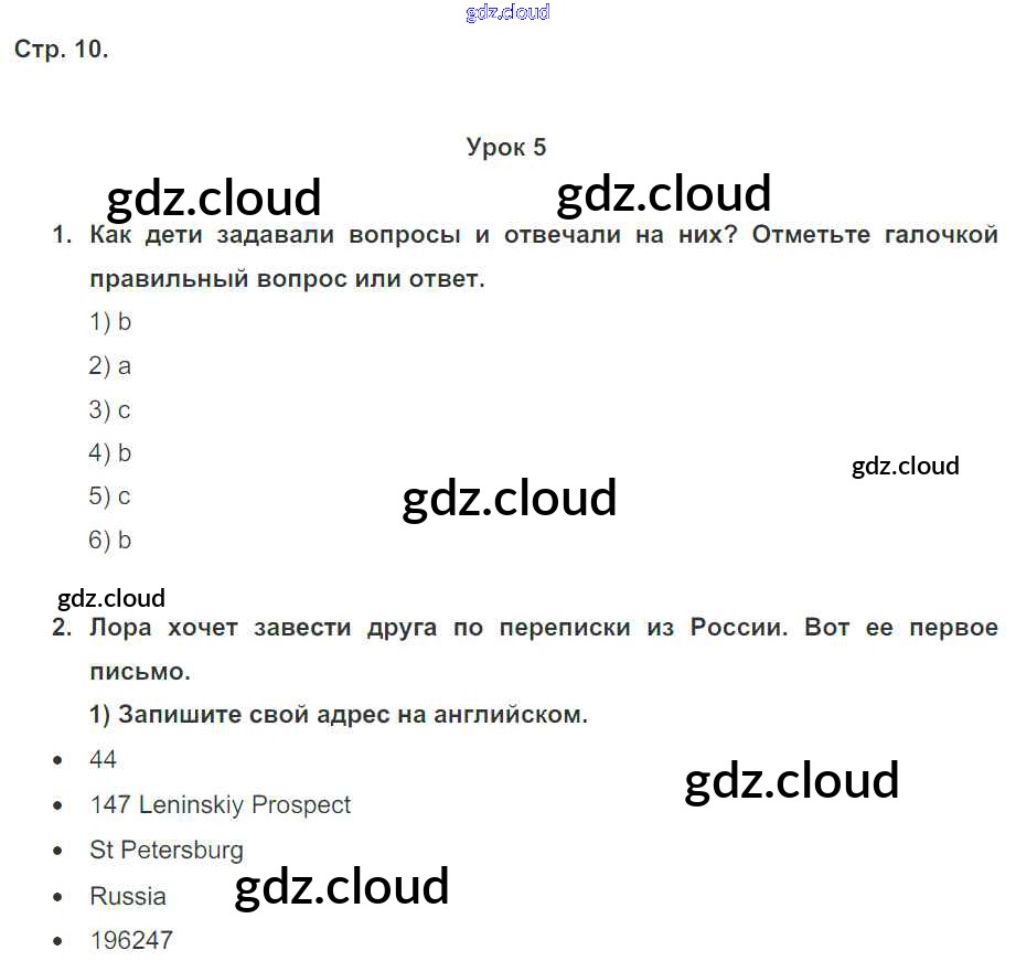 Ответ на задание стр. 10 Рабочая тетрадь Английский язык за 5 (пятый) класс Кузовлев, Лапа, Костина, Дуванова, Кузнецова Академический школьный учебник 2013