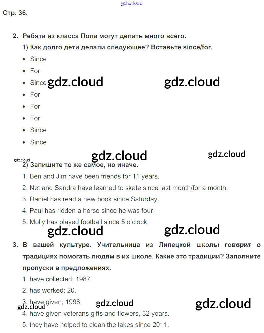Ответ на задание стр. 36 Рабочая тетрадь Английский язык за 5 (пятый) класс Кузовлев, Лапа, Костина, Дуванова, Кузнецова Академический школьный учебник 2013