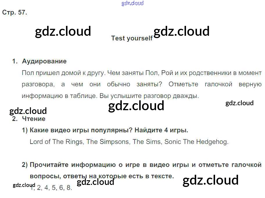 Ответ на задание стр. 57 Рабочая тетрадь Английский язык за 5 (пятый) класс Кузовлев, Лапа, Костина, Дуванова, Кузнецова Академический школьный учебник 2013