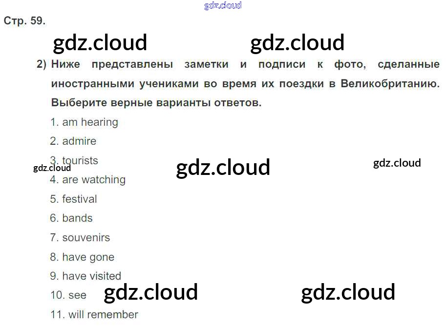 Ответ на задание стр. 59 Рабочая тетрадь Английский язык за 5 (пятый) класс Кузовлев, Лапа, Костина, Дуванова, Кузнецова Академический школьный учебник 2013