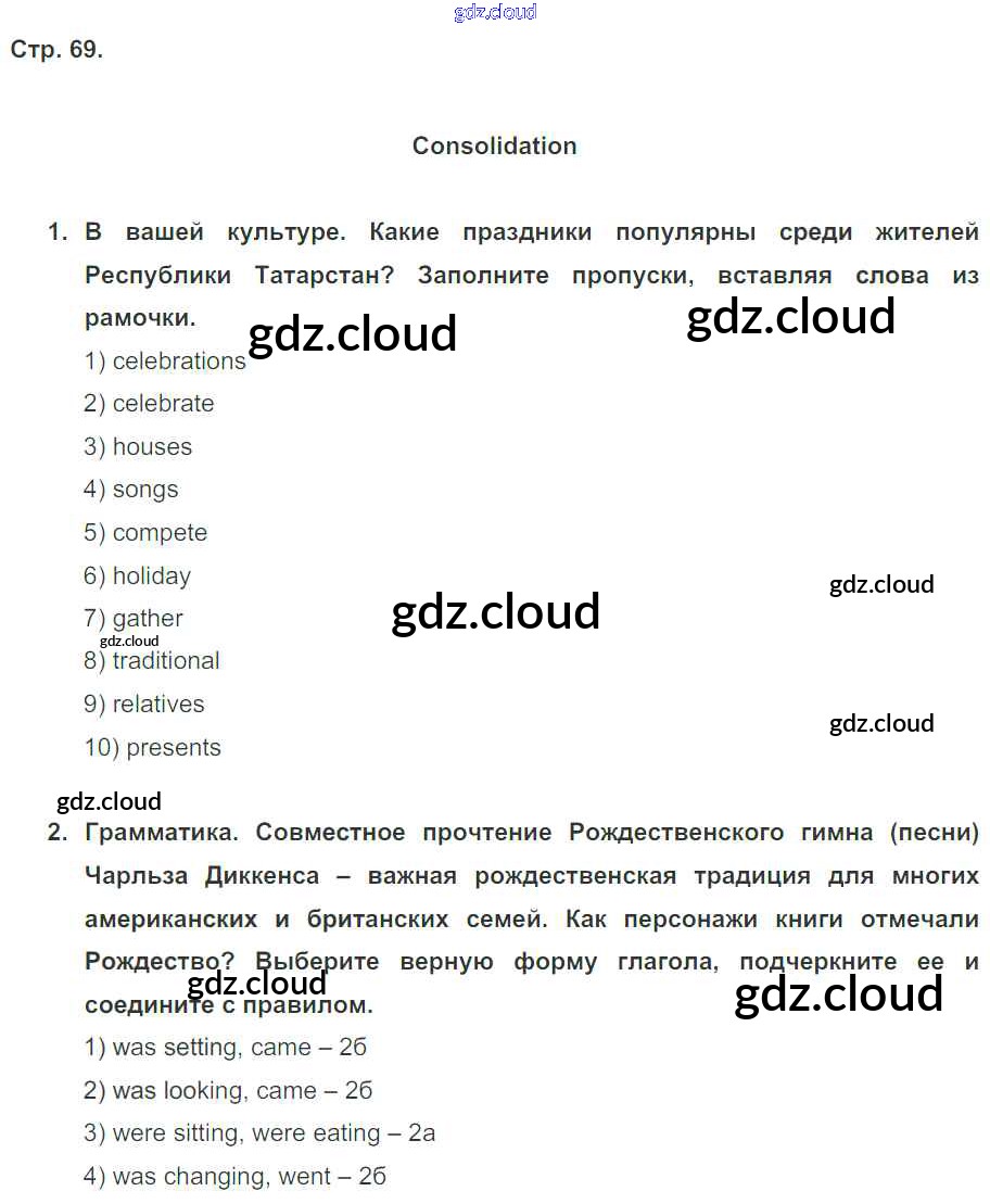 Ответ на задание стр. 69 Рабочая тетрадь Английский язык за 5 (пятый) класс Кузовлев, Лапа, Костина, Дуванова, Кузнецова Академический школьный учебник 2013