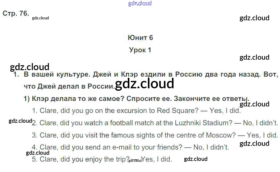 Ответ на задание стр. 76 Рабочая тетрадь Английский язык за 5 (пятый) класс Кузовлев, Лапа, Костина, Дуванова, Кузнецова Академический школьный учебник 2013