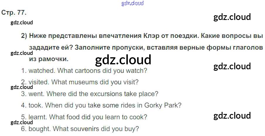 Ответ на задание стр. 77 Рабочая тетрадь Английский язык за 5 (пятый) класс Кузовлев, Лапа, Костина, Дуванова, Кузнецова Академический школьный учебник 2013