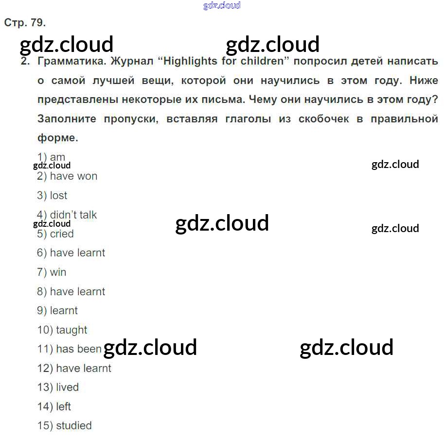 Ответ на задание стр. 79 Рабочая тетрадь Английский язык за 5 (пятый) класс Кузовлев, Лапа, Костина, Дуванова, Кузнецова Академический школьный учебник 2013