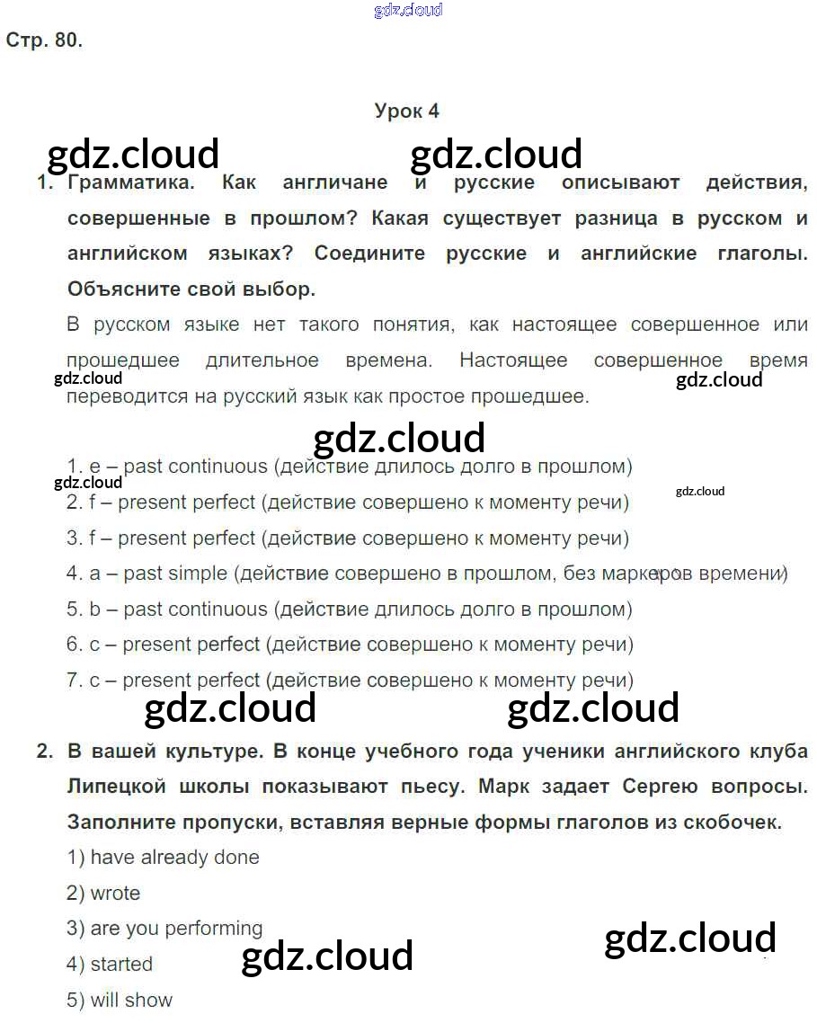 Ответ на задание стр. 80 Рабочая тетрадь Английский язык за 5 (пятый) класс Кузовлев, Лапа, Костина, Дуванова, Кузнецова Академический школьный учебник 2013