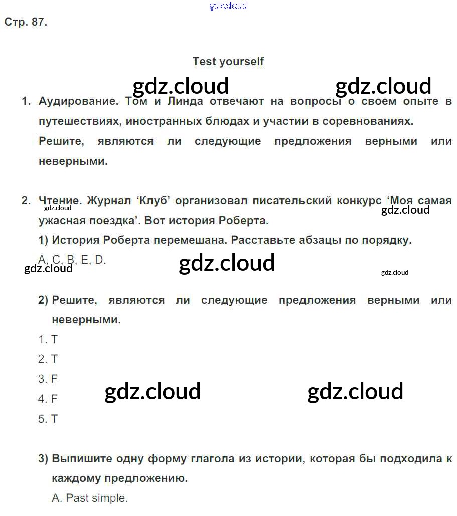 Ответ на задание стр. 87 Рабочая тетрадь Английский язык за 5 (пятый) класс Кузовлев, Лапа, Костина, Дуванова, Кузнецова Академический школьный учебник 2013