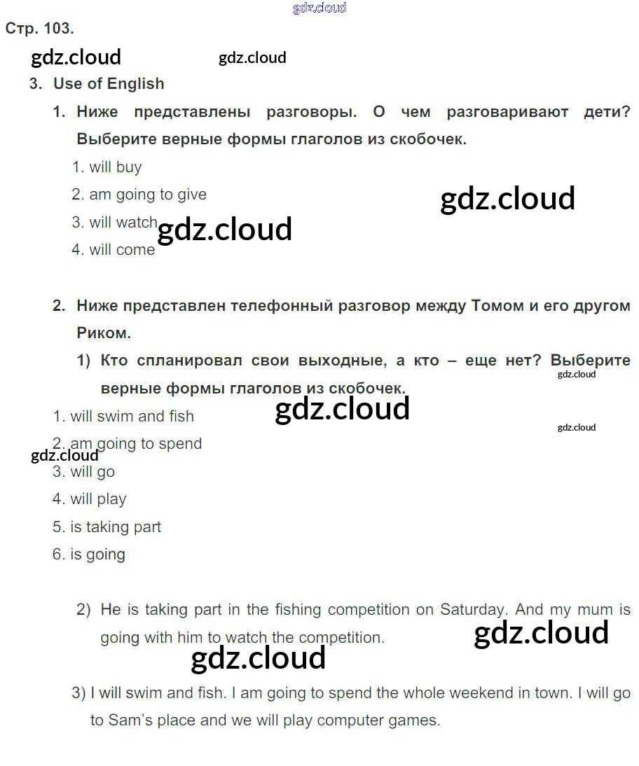 Ответ на задание стр. 103 Рабочая тетрадь Английский язык за 5 (пятый) класс Кузовлев, Лапа, Костина, Дуванова, Кузнецова Академический школьный учебник 2013