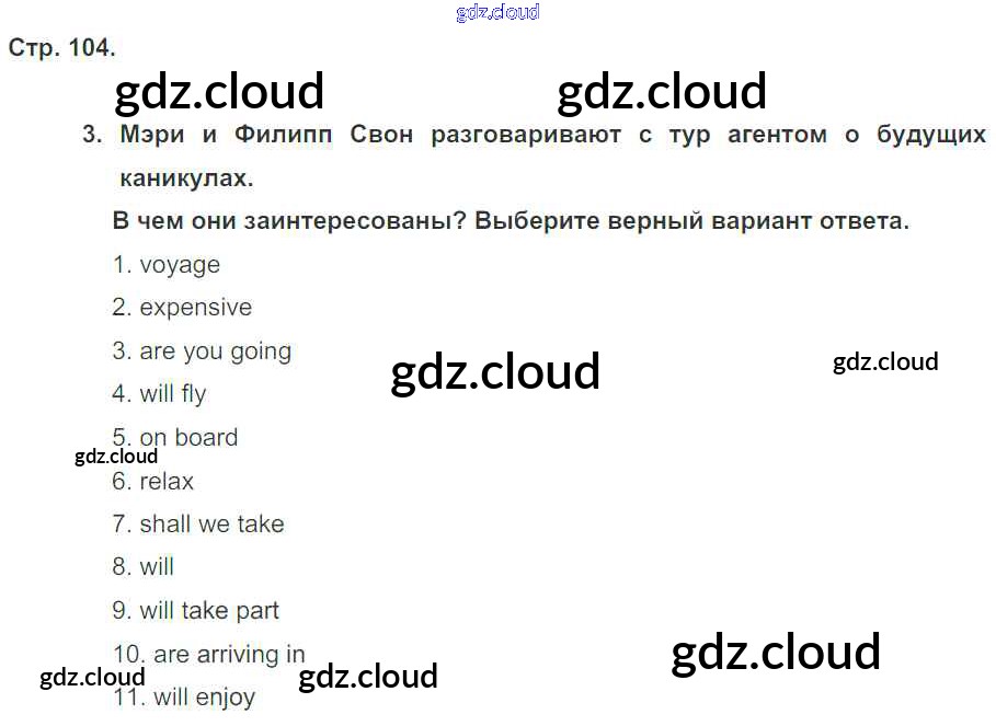 Ответ на задание стр. 104 Рабочая тетрадь Английский язык за 5 (пятый) класс Кузовлев, Лапа, Костина, Дуванова, Кузнецова Академический школьный учебник 2013