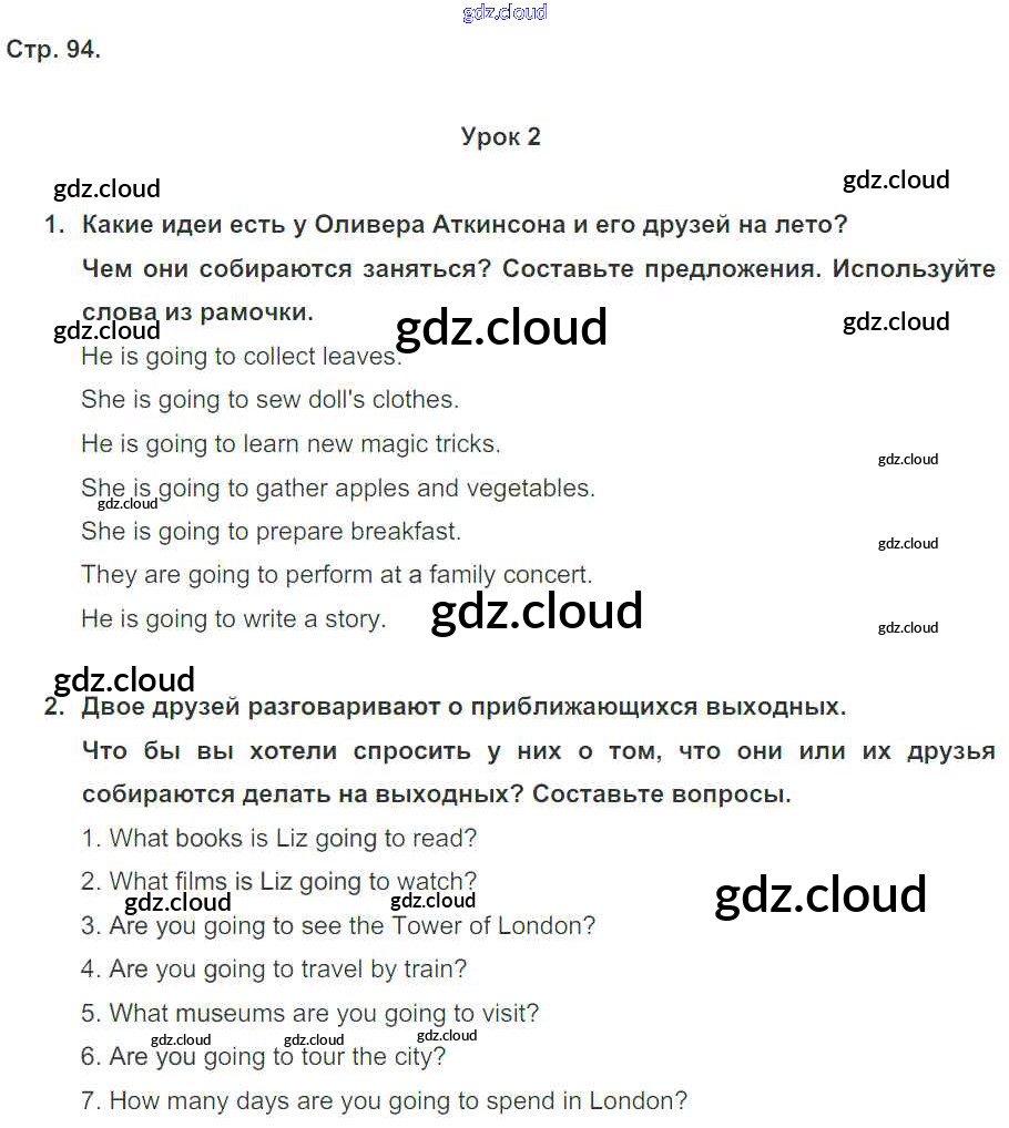 Ответ на задание стр. 94 Рабочая тетрадь Английский язык за 5 (пятый) класс Кузовлев, Лапа, Костина, Дуванова, Кузнецова Академический школьный учебник 2013