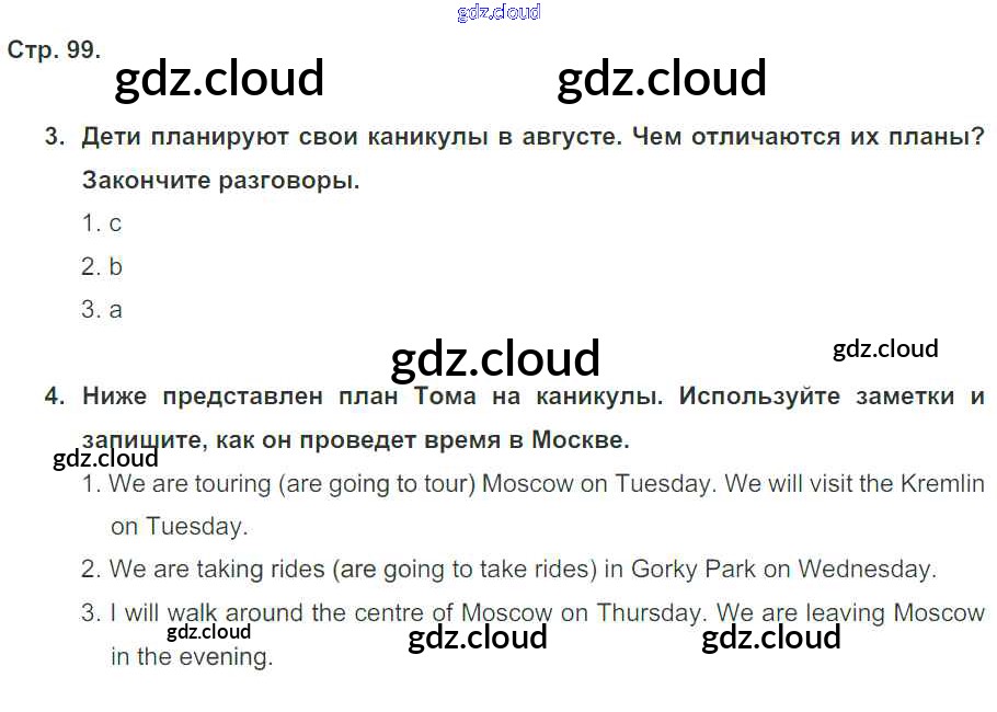 Ответ на задание стр. 99 Рабочая тетрадь Английский язык за 5 (пятый) класс Кузовлев, Лапа, Костина, Дуванова, Кузнецова Академический школьный учебник 2013