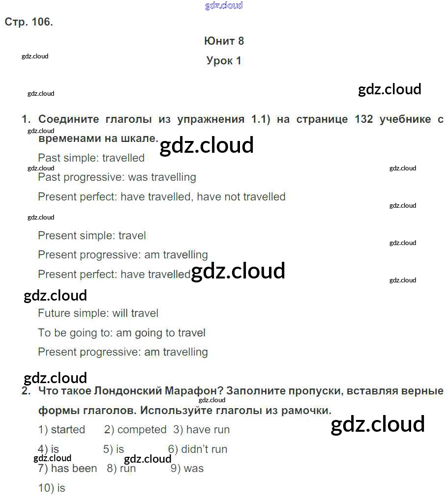 Ответ на задание стр. 106 Рабочая тетрадь Английский язык за 5 (пятый) класс Кузовлев, Лапа, Костина, Дуванова, Кузнецова Академический школьный учебник 2013