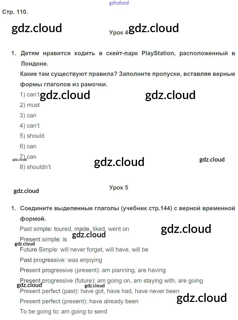 Ответ на задание стр. 110 Рабочая тетрадь Английский язык за 5 (пятый) класс Кузовлев, Лапа, Костина, Дуванова, Кузнецова Академический школьный учебник 2013