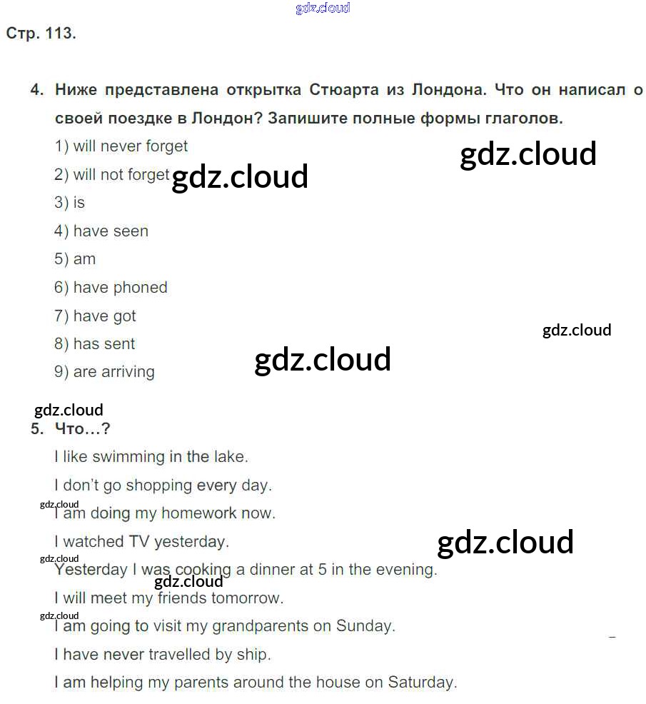 Ответ на задание стр. 113 Рабочая тетрадь Английский язык за 5 (пятый) класс Кузовлев, Лапа, Костина, Дуванова, Кузнецова Академический школьный учебник 2013