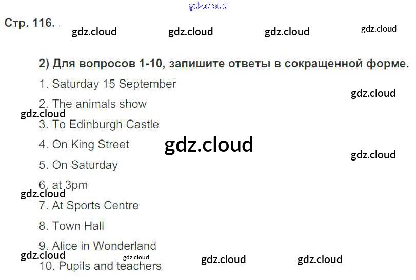 Ответ на задание стр. 116 Рабочая тетрадь Английский язык за 5 (пятый) класс Кузовлев, Лапа, Костина, Дуванова, Кузнецова Академический школьный учебник 2013
