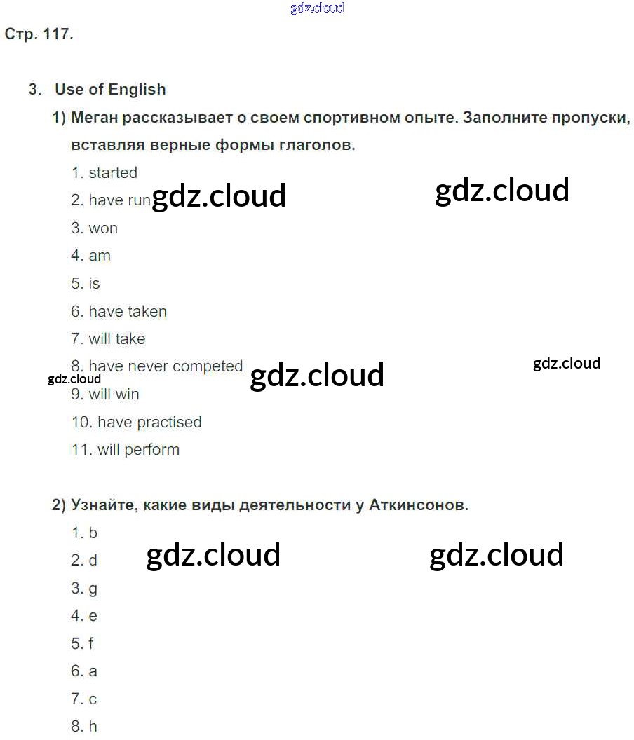 Ответ на задание стр. 117 Рабочая тетрадь Английский язык за 5 (пятый) класс Кузовлев, Лапа, Костина, Дуванова, Кузнецова Академический школьный учебник 2013