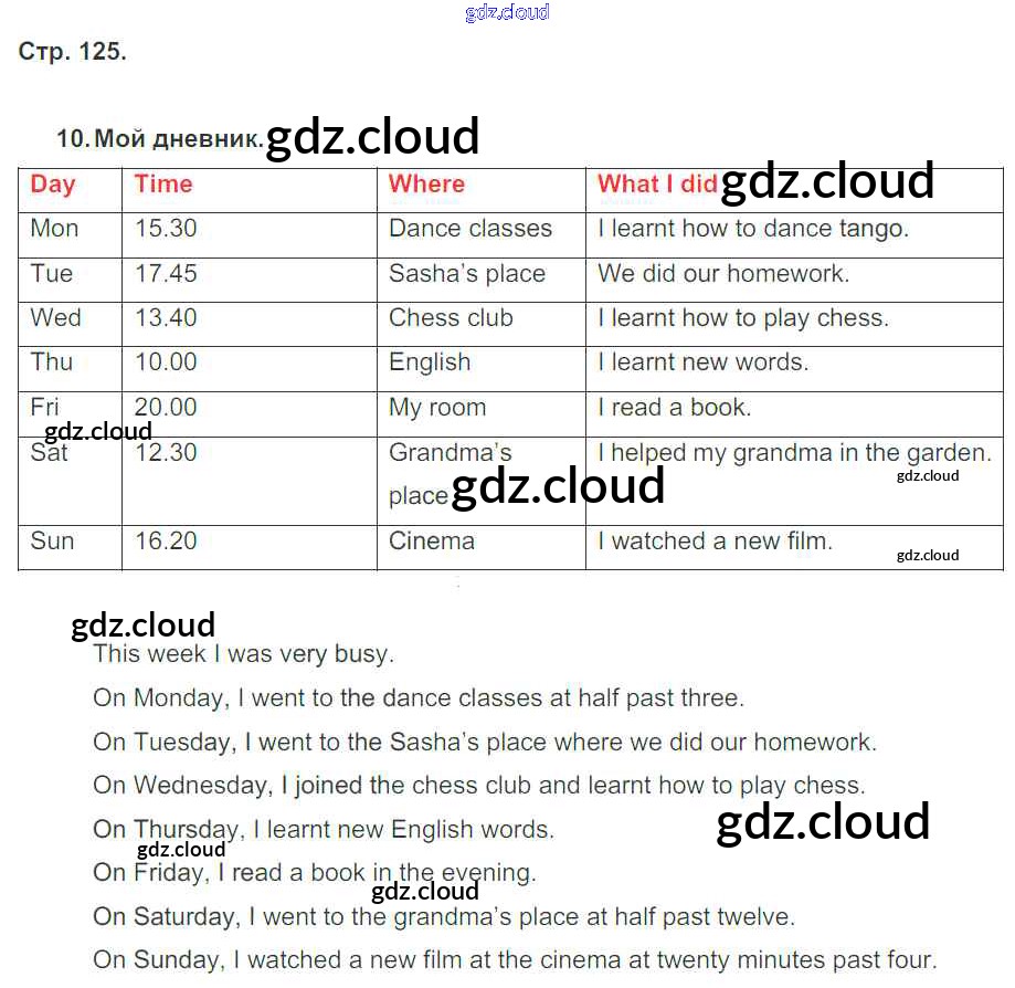 Ответ на задание стр. 125 Рабочая тетрадь Английский язык за 5 (пятый) класс Кузовлев, Лапа, Костина, Дуванова, Кузнецова Академический школьный учебник 2013