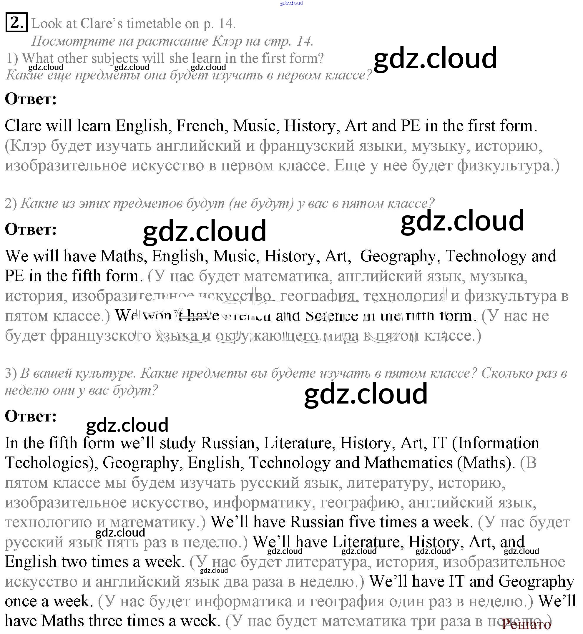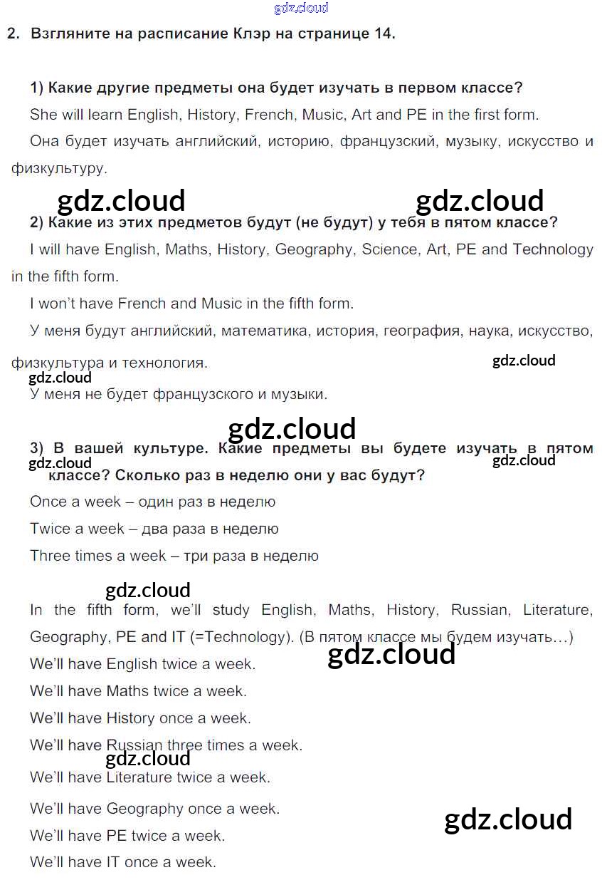 Ответ на задание 2 Учебник Английский язык за 5 (пятый) класс Кузовлев, Лапа, Костина, Дуванова, Кузнецова УМК 2015