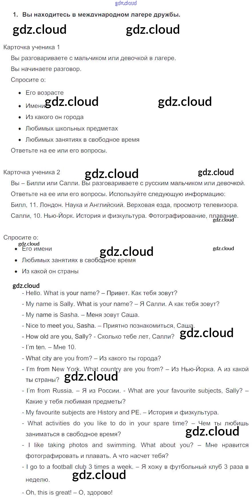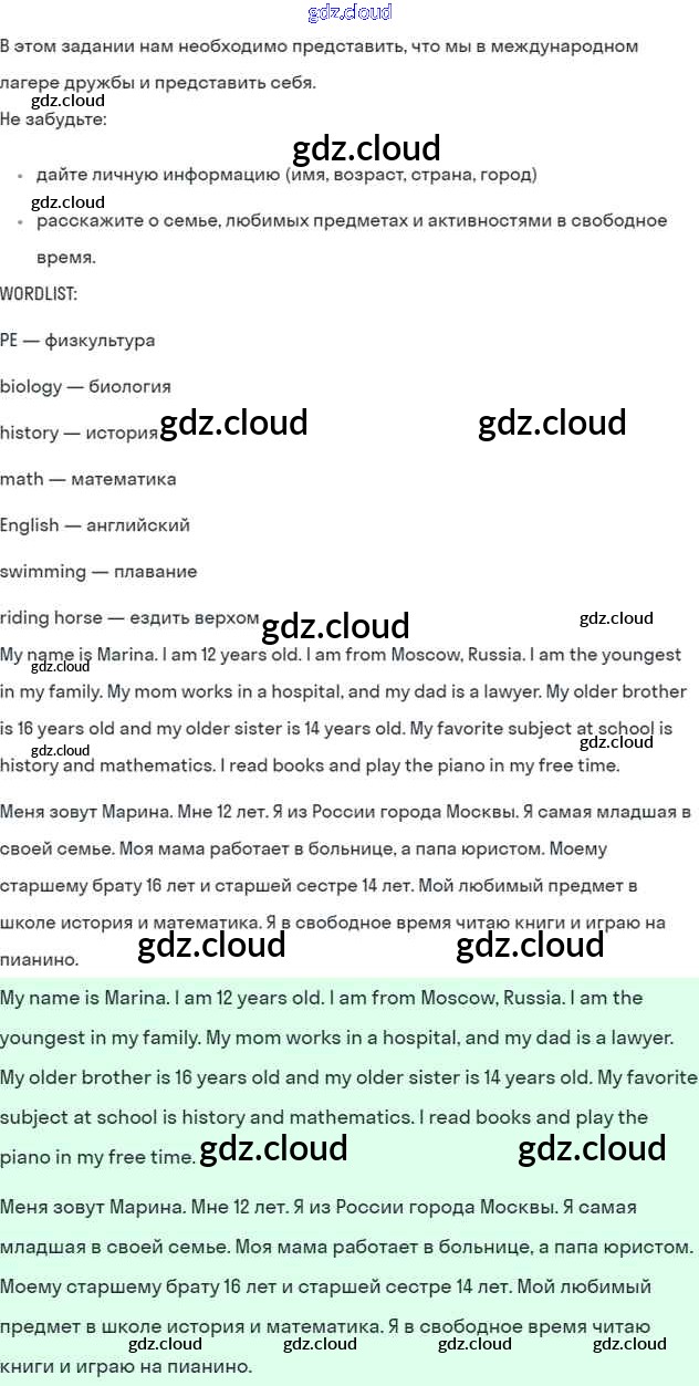 Ответ на задание 1 Учебник Английский язык за 5 (пятый) класс Кузовлев, Лапа, Костина, Дуванова, Кузнецова УМК 2015