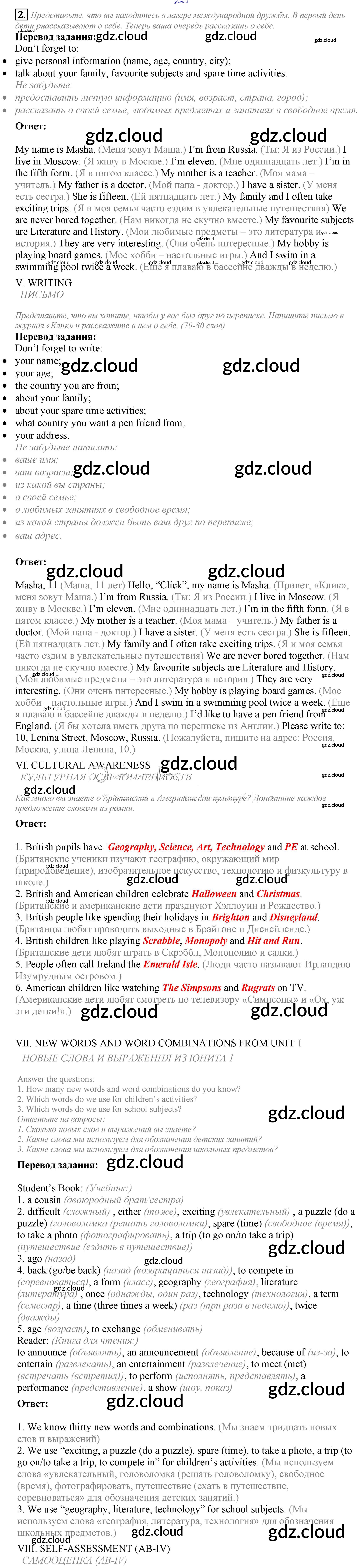 Lesson 7-8. Test yourself Ответы к Unit 1. Let's make friends! по Английскому языку 5 класс Учебник Кузовлев УМК Просвещение