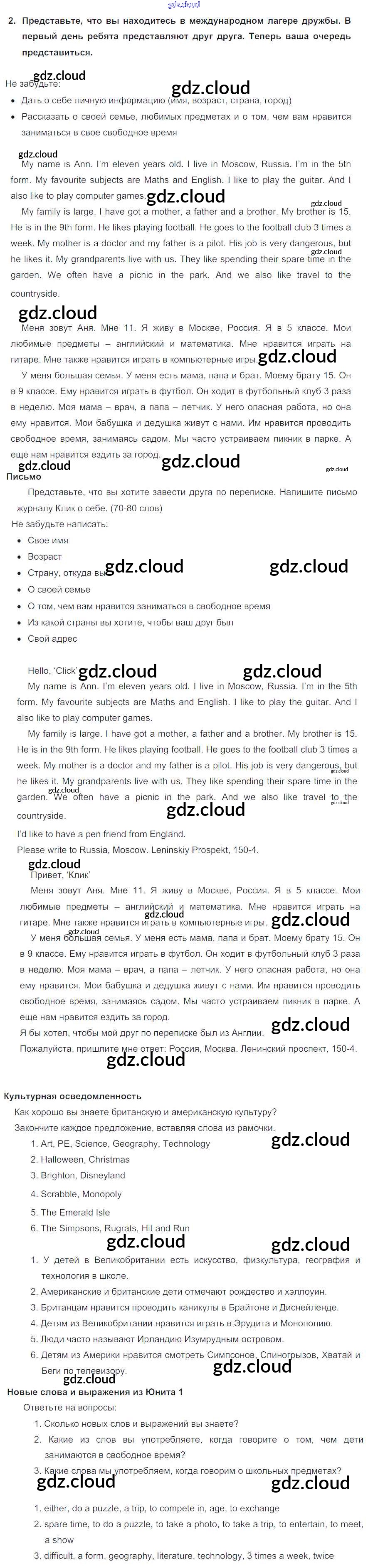 Ответ на задание 2 Учебник Английский язык за 5 (пятый) класс Кузовлев, Лапа, Костина, Дуванова, Кузнецова УМК 2015