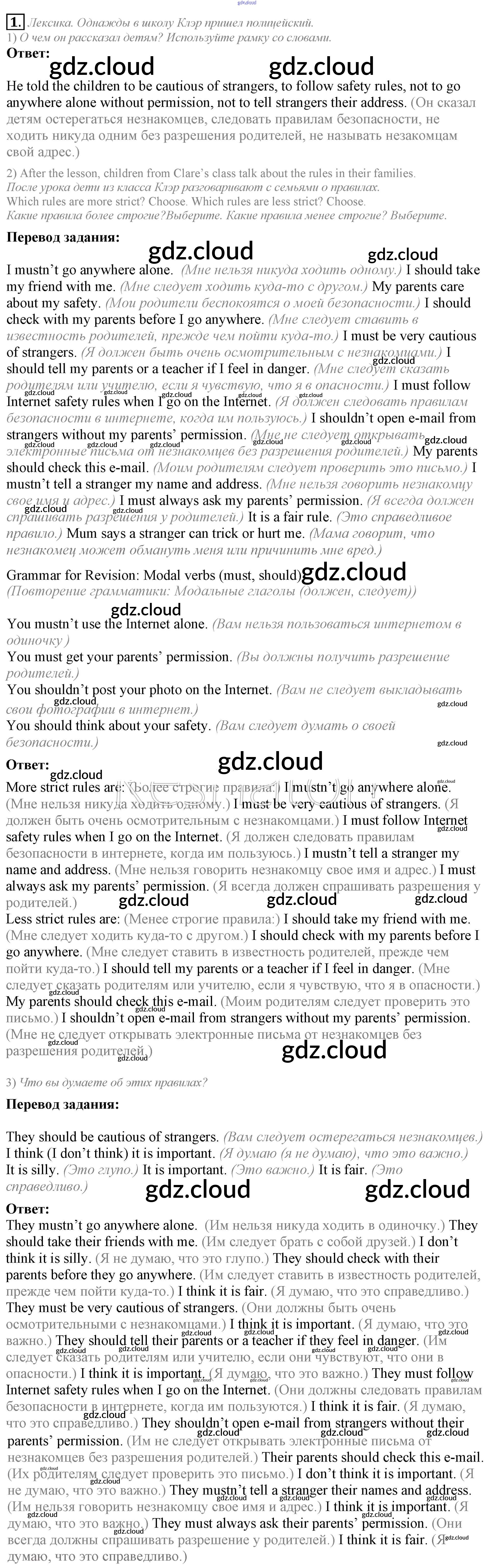 Ответ на задание 1 Учебник Английский язык за 5 (пятый) класс Кузовлев, Лапа, Костина, Дуванова, Кузнецова УМК 2015