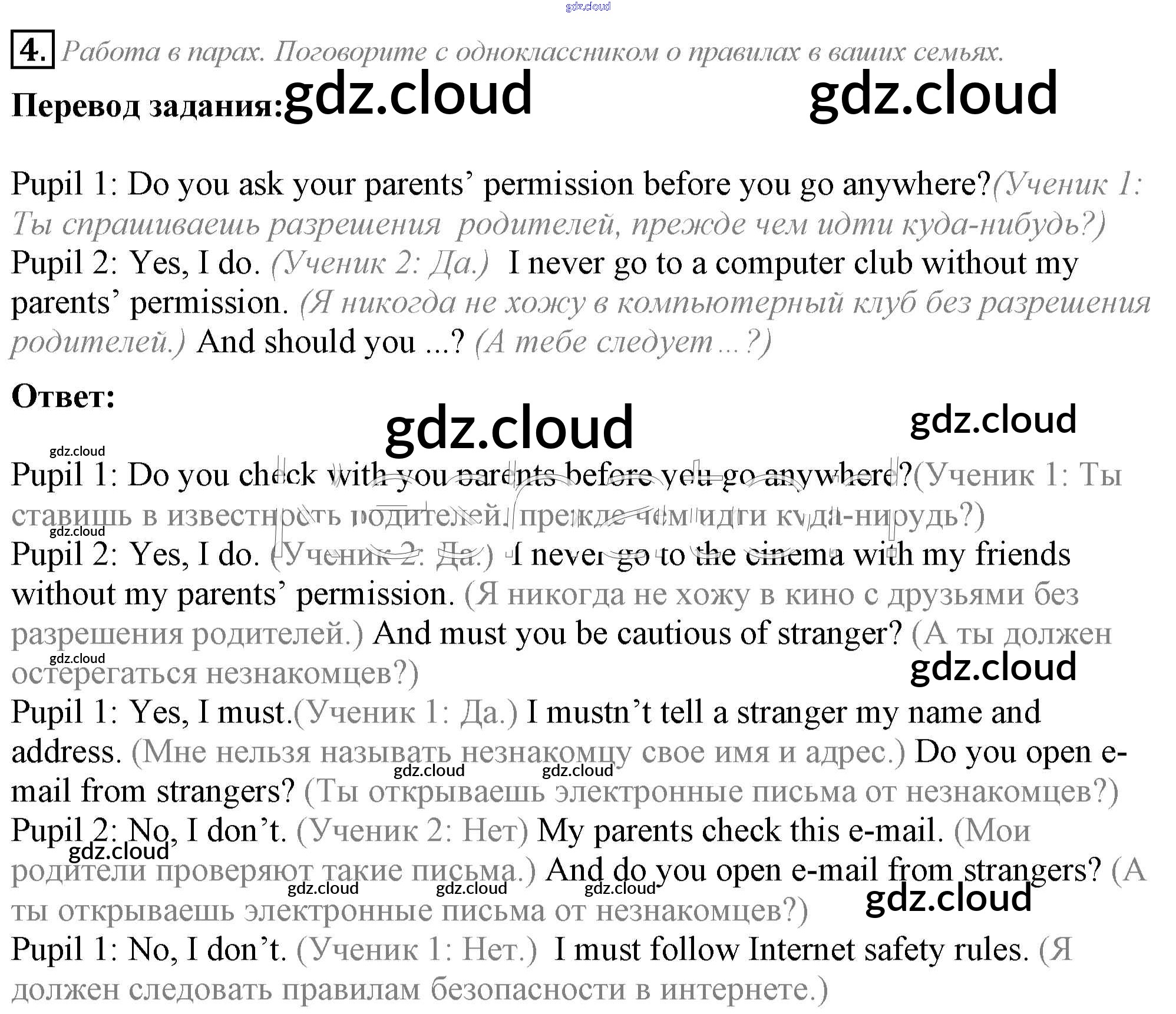 Ответ на задание 4 Учебник Английский язык за 5 (пятый) класс Кузовлев, Лапа, Костина, Дуванова, Кузнецова УМК 2015