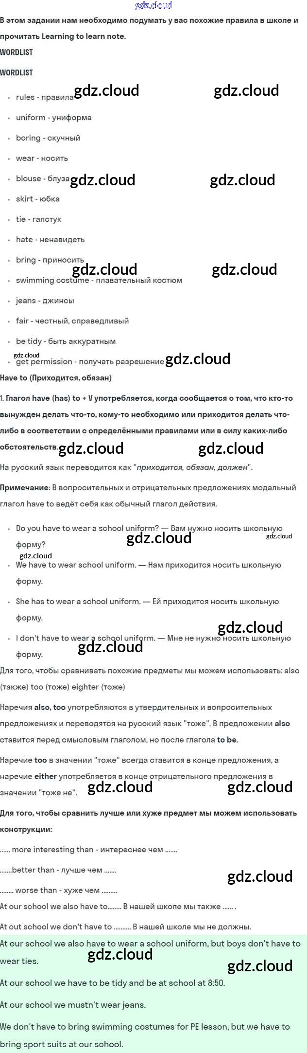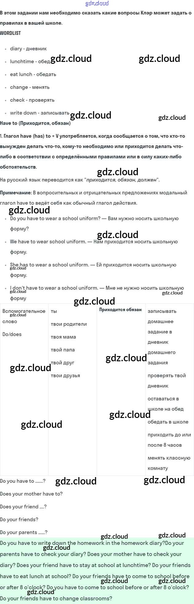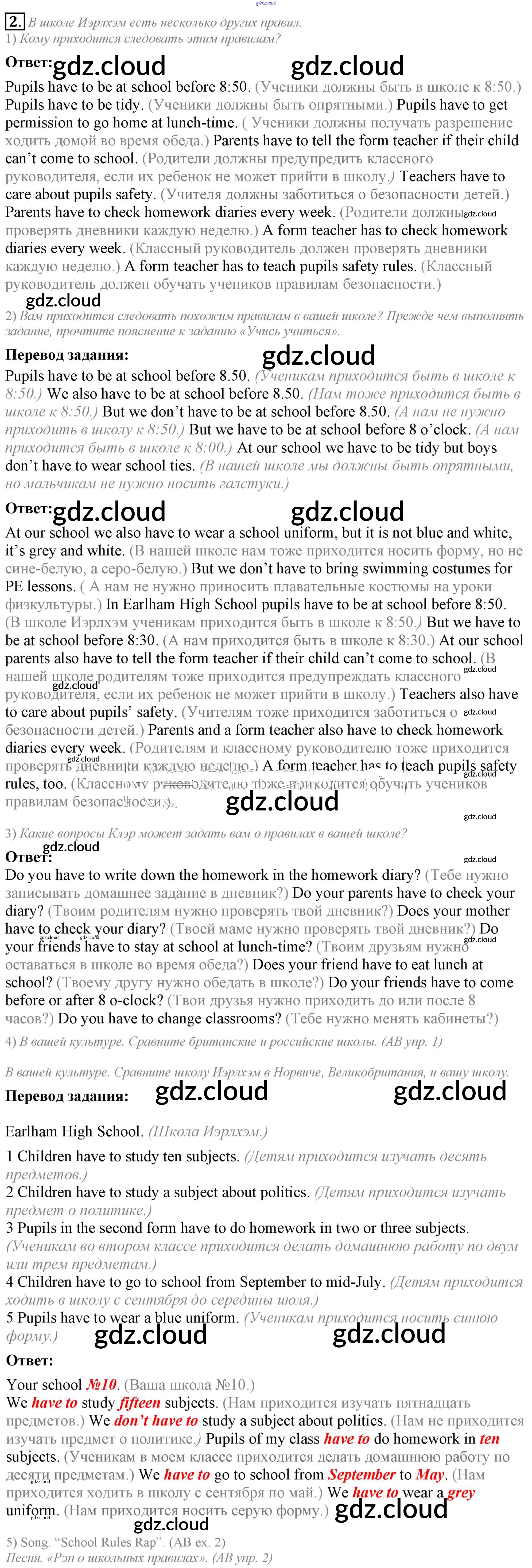 Lesson 2. Do you have to do it? Ответы к Unit 2. Rules around us по Английскому языку 5 класс Учебник Кузовлев УМК Просвещение
