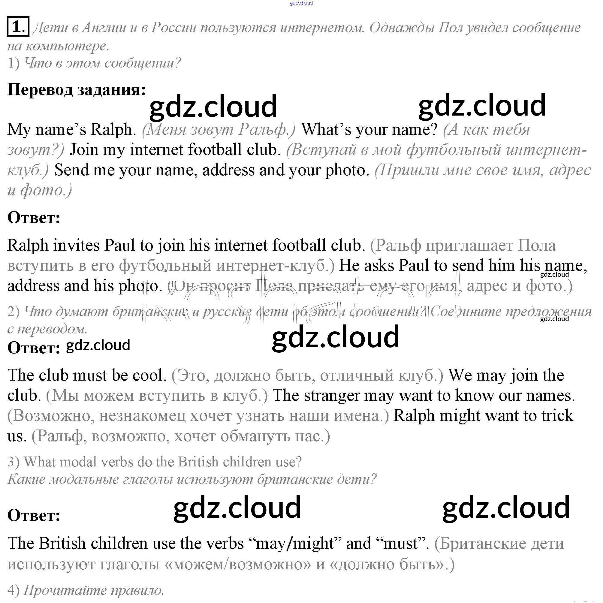 Ответ на задание 1 Учебник Английский язык за 5 (пятый) класс Кузовлев, Лапа, Костина, Дуванова, Кузнецова УМК 2015