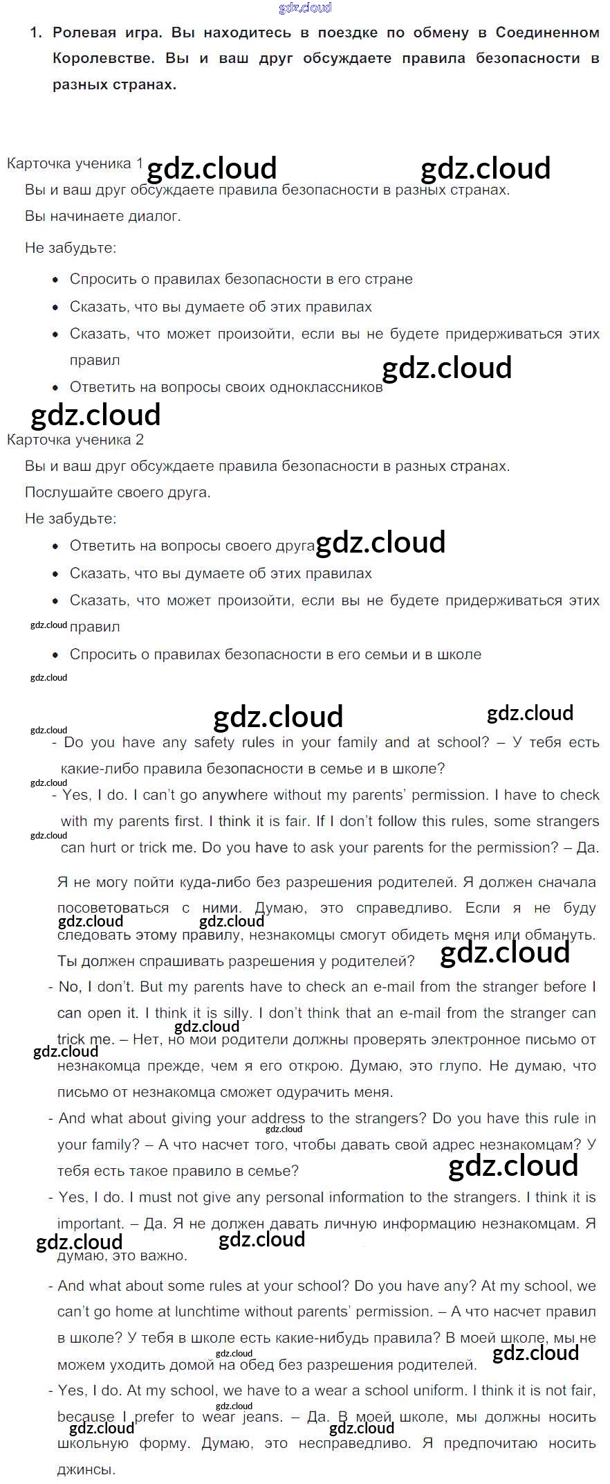 Ответ на задание 1 Учебник Английский язык за 5 (пятый) класс Кузовлев, Лапа, Костина, Дуванова, Кузнецова УМК 2015