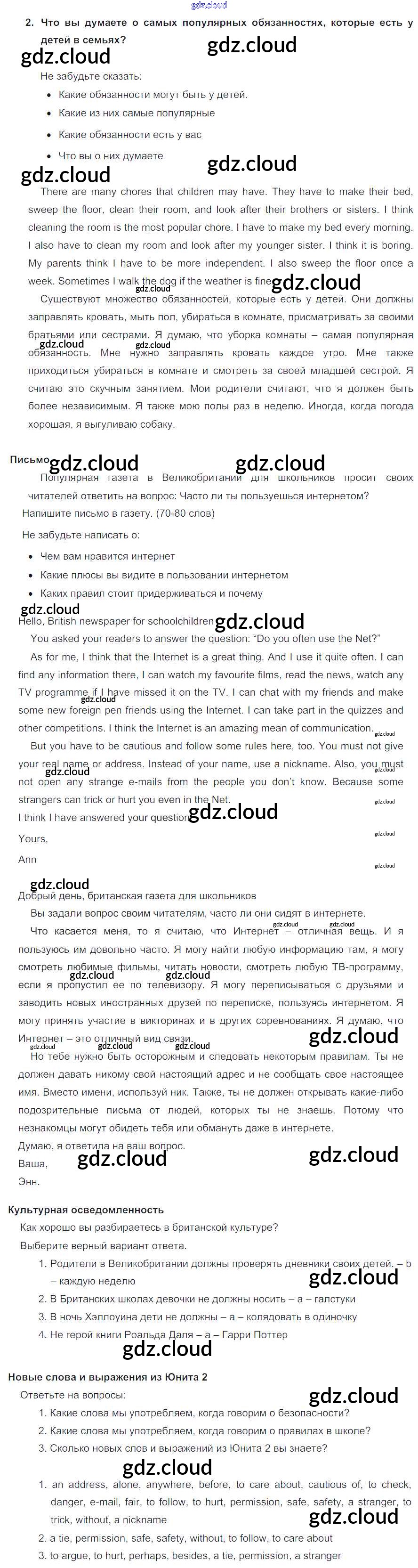 Ответ на задание 2 Учебник Английский язык за 5 (пятый) класс Кузовлев, Лапа, Костина, Дуванова, Кузнецова УМК 2015