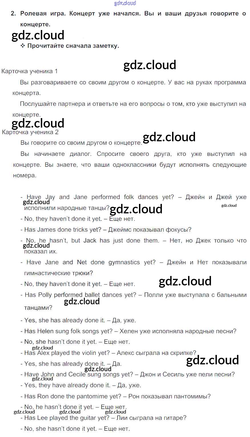 Ответ на задание 2 Учебник Английский язык за 5 (пятый) класс Кузовлев, Лапа, Костина, Дуванова, Кузнецова УМК 2015