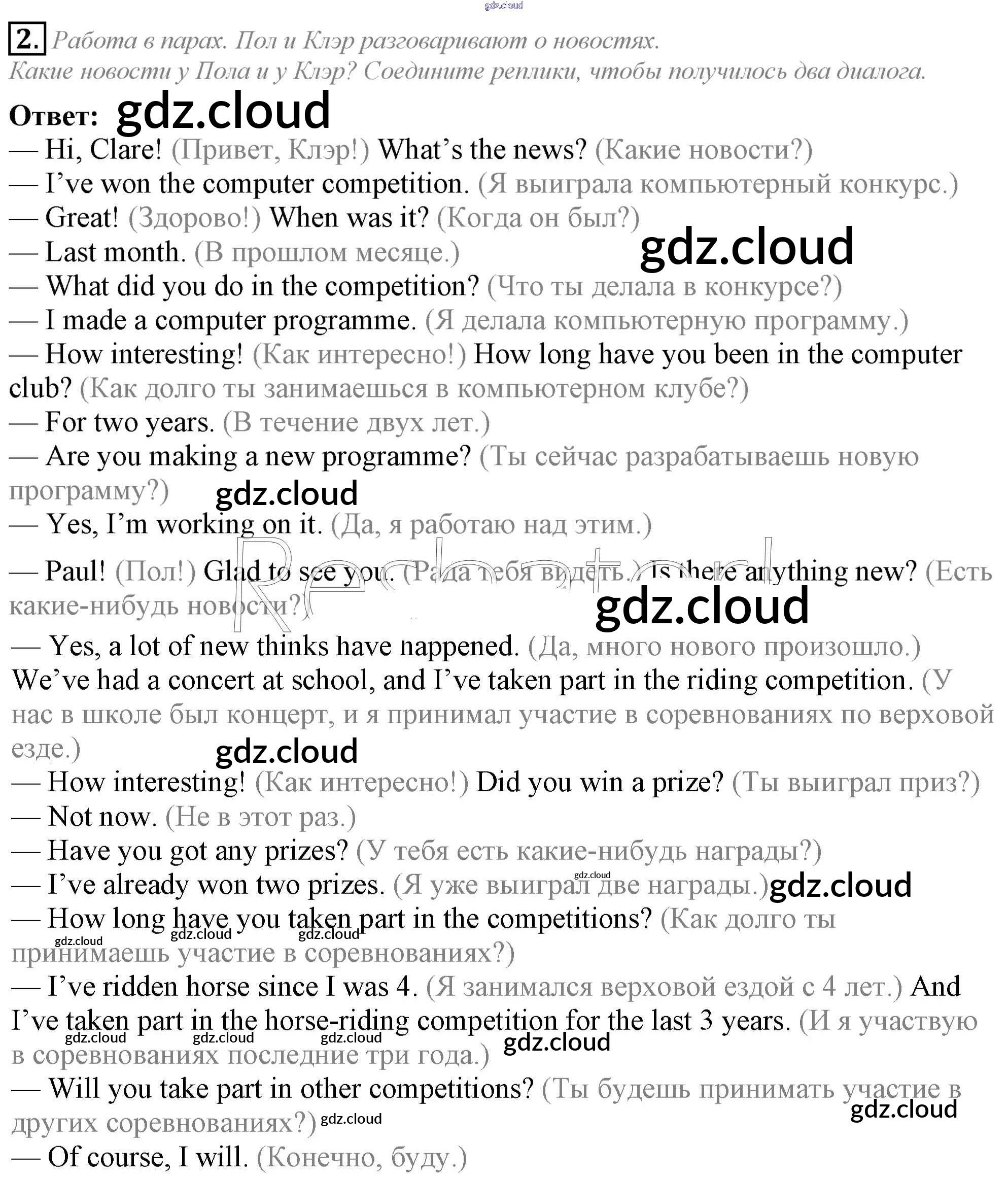 Ответ на задание 2 Учебник Английский язык за 5 (пятый) класс Кузовлев, Лапа, Костина, Дуванова, Кузнецова УМК 2015