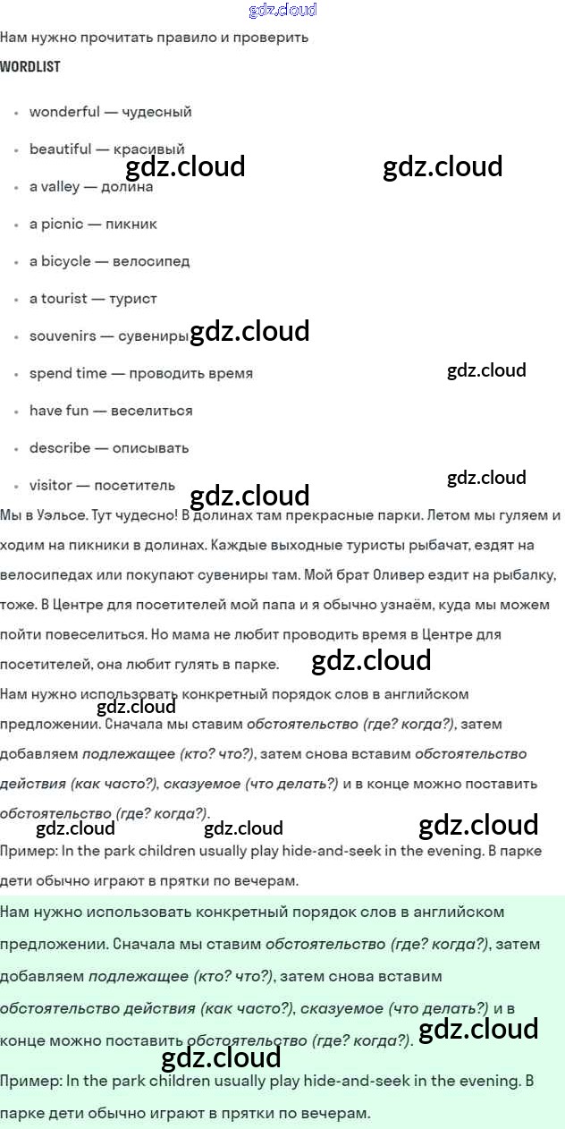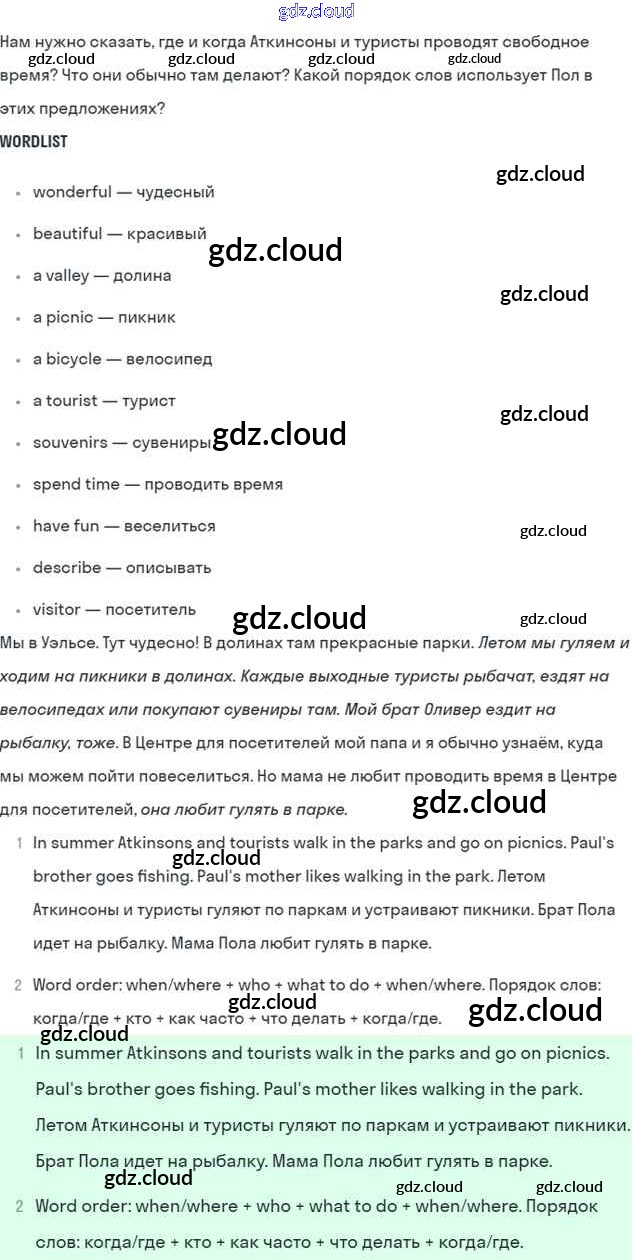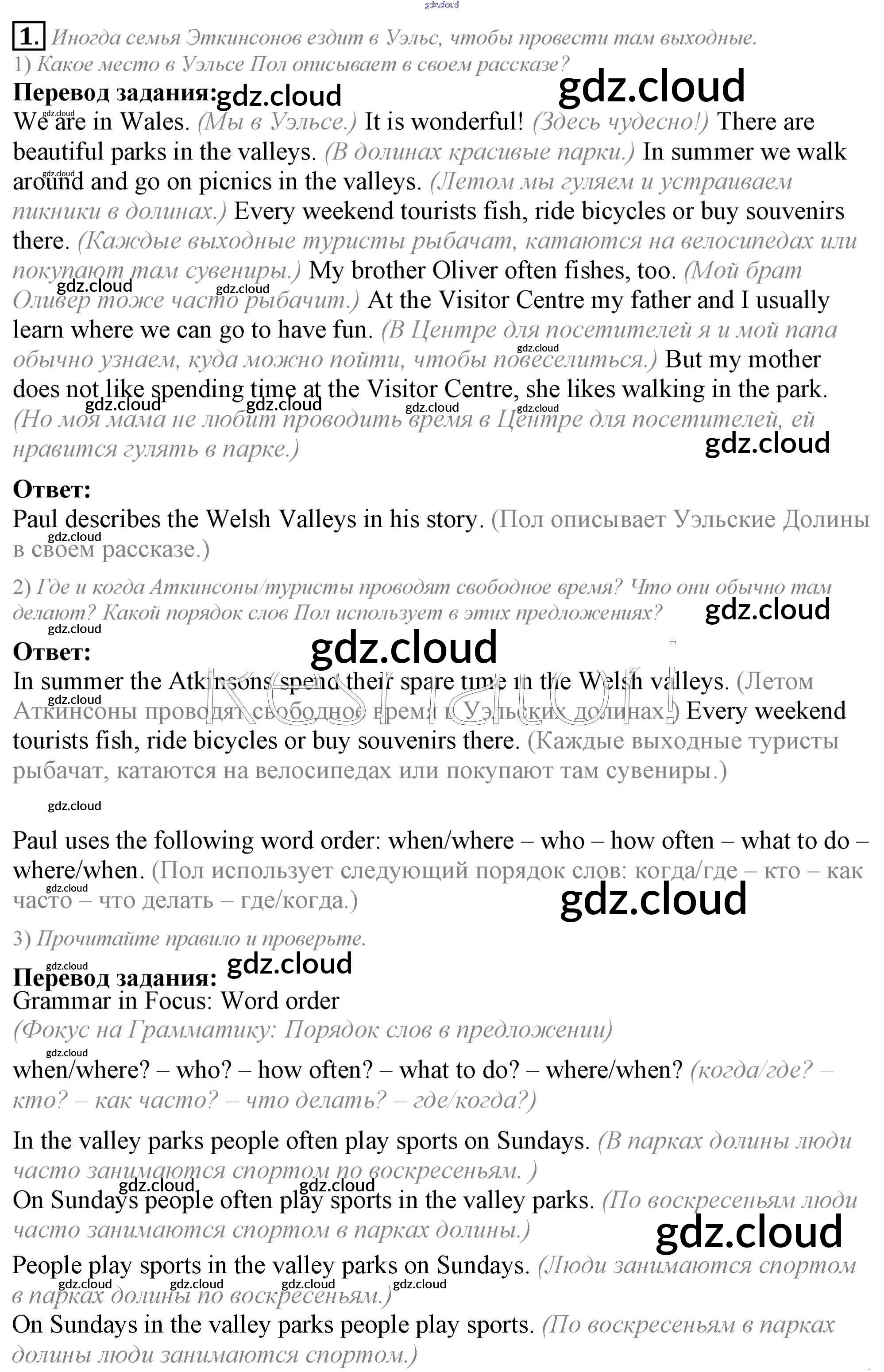 Lesson 1. We like Wales! Ответы к Unit 4. Every day and at weekends по Английскому языку 5 класс Учебник Кузовлев УМК Просвещение