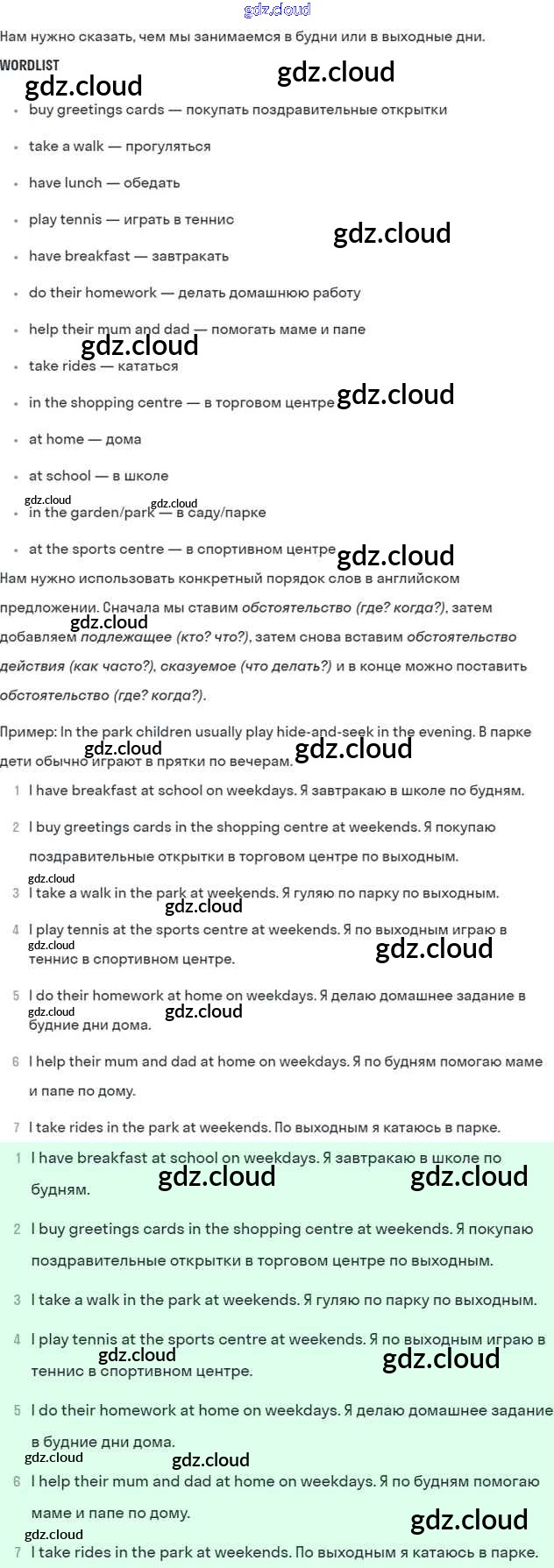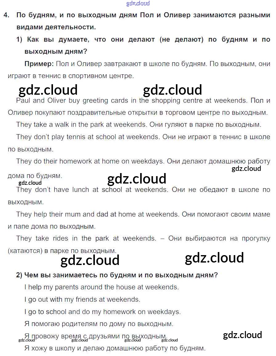 Lesson 1. We like Wales! Ответы к Unit 4. Every day and at weekends по Английскому языку 5 класс Учебник Кузовлев УМК Просвещение