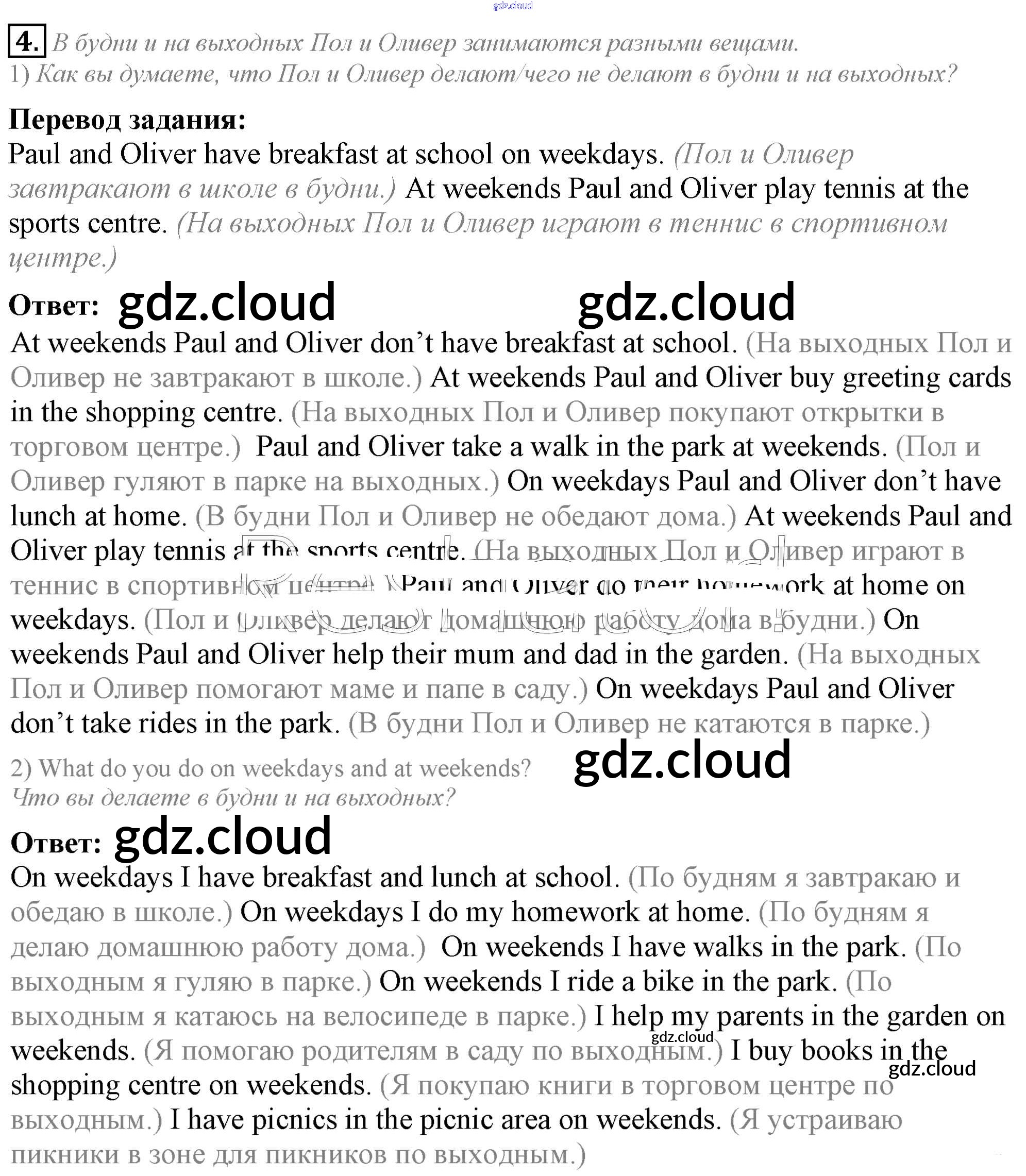 Ответ на задание 4 Учебник Английский язык за 5 (пятый) класс Кузовлев, Лапа, Костина, Дуванова, Кузнецова УМК 2015
