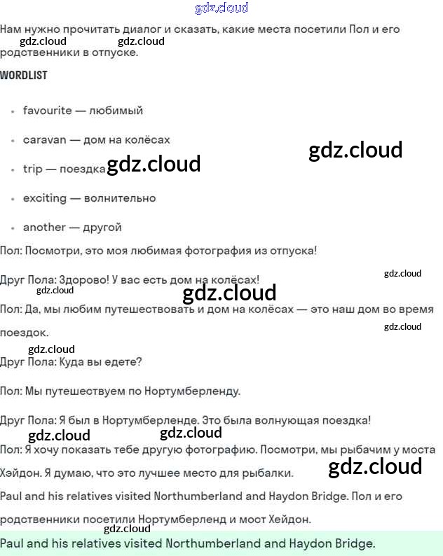 Lesson 2. We are enjoying a caravan holiday Ответы к Unit 4. Every day and at weekends по Английскому языку 5 класс Учебник Кузовлев УМК Просвещение