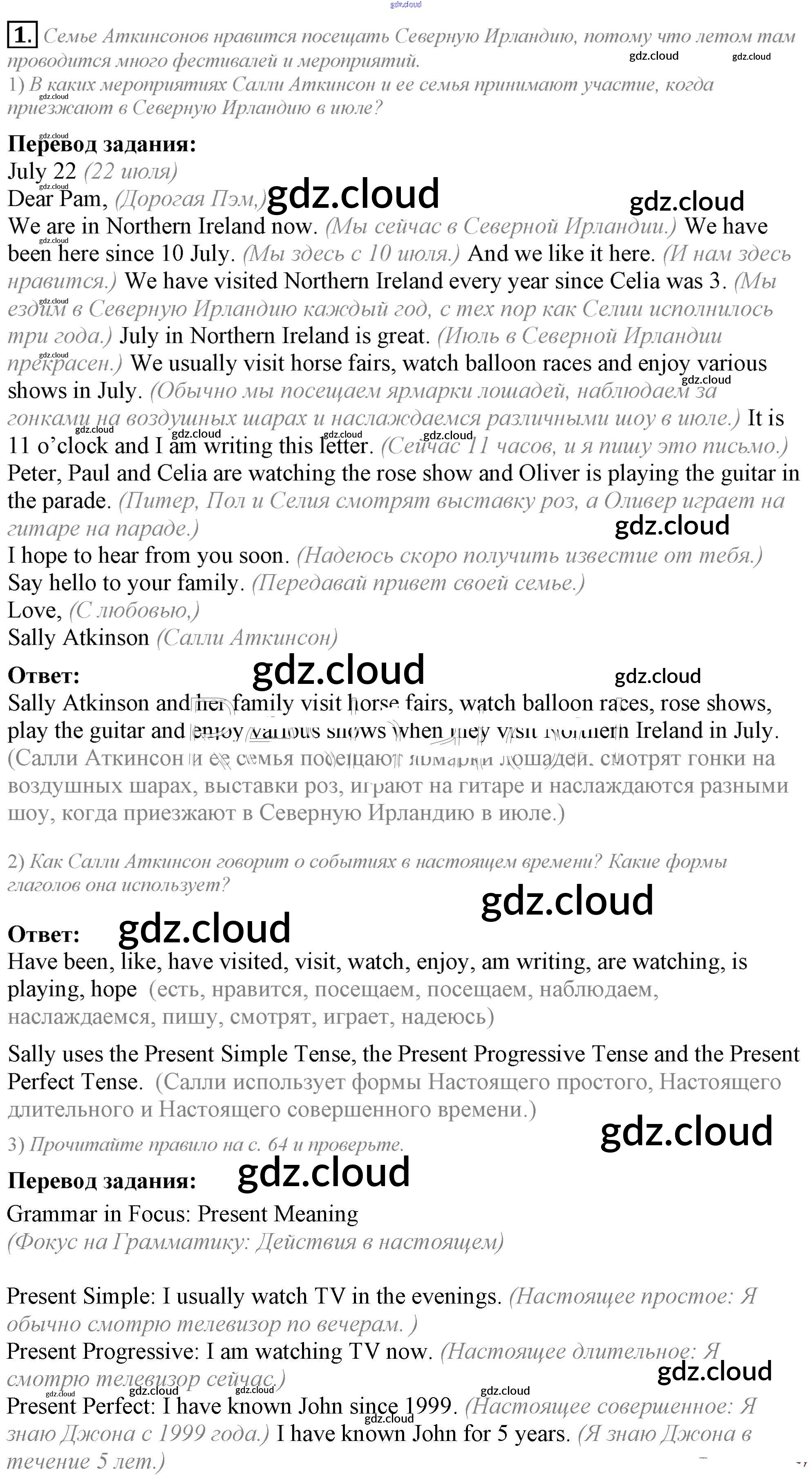 Ответ на задание 1 Учебник Английский язык за 5 (пятый) класс Кузовлев, Лапа, Костина, Дуванова, Кузнецова УМК 2015