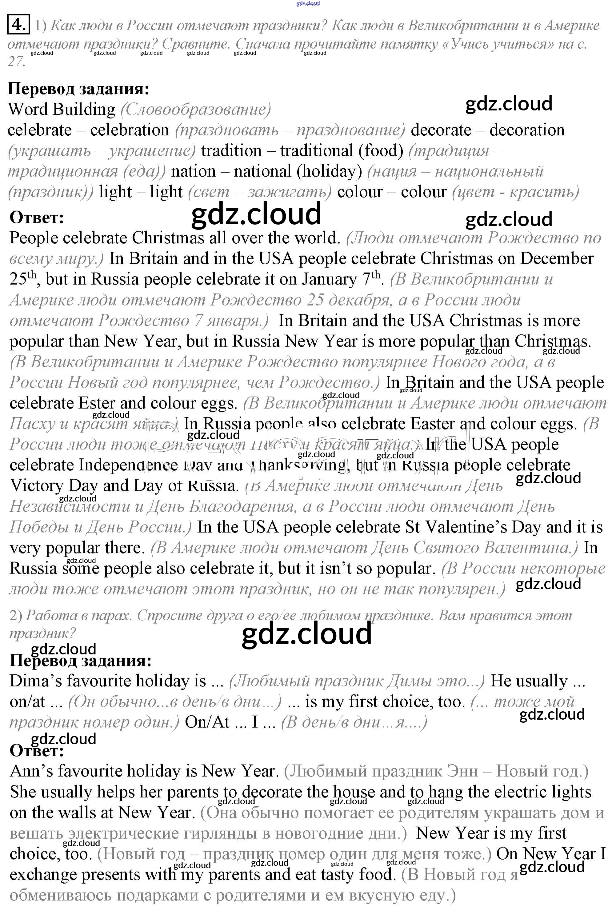 Ответ на задание 4 Учебник Английский язык за 5 (пятый) класс Кузовлев, Лапа, Костина, Дуванова, Кузнецова УМК 2015