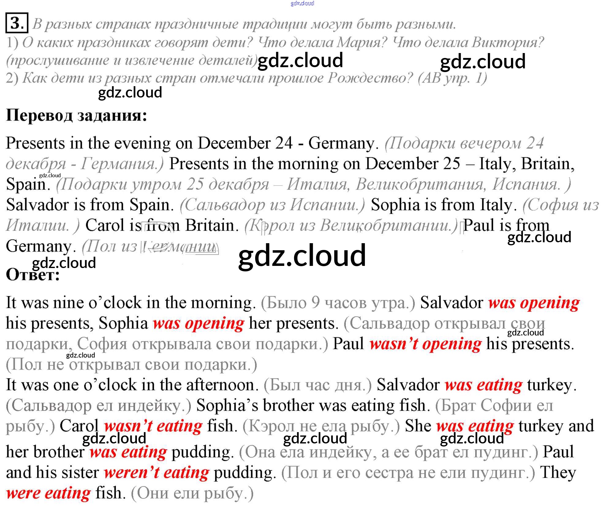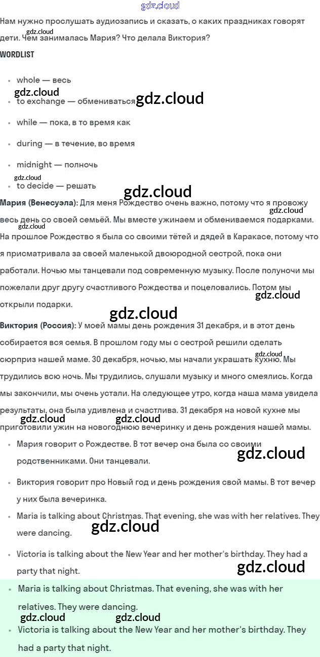Lesson 2. I was decorating the Christmas tree for two hours Ответы к Unit 5. My favourite celebrations по Английскому языку 5 класс Учебник Кузовлев УМК Просвещение