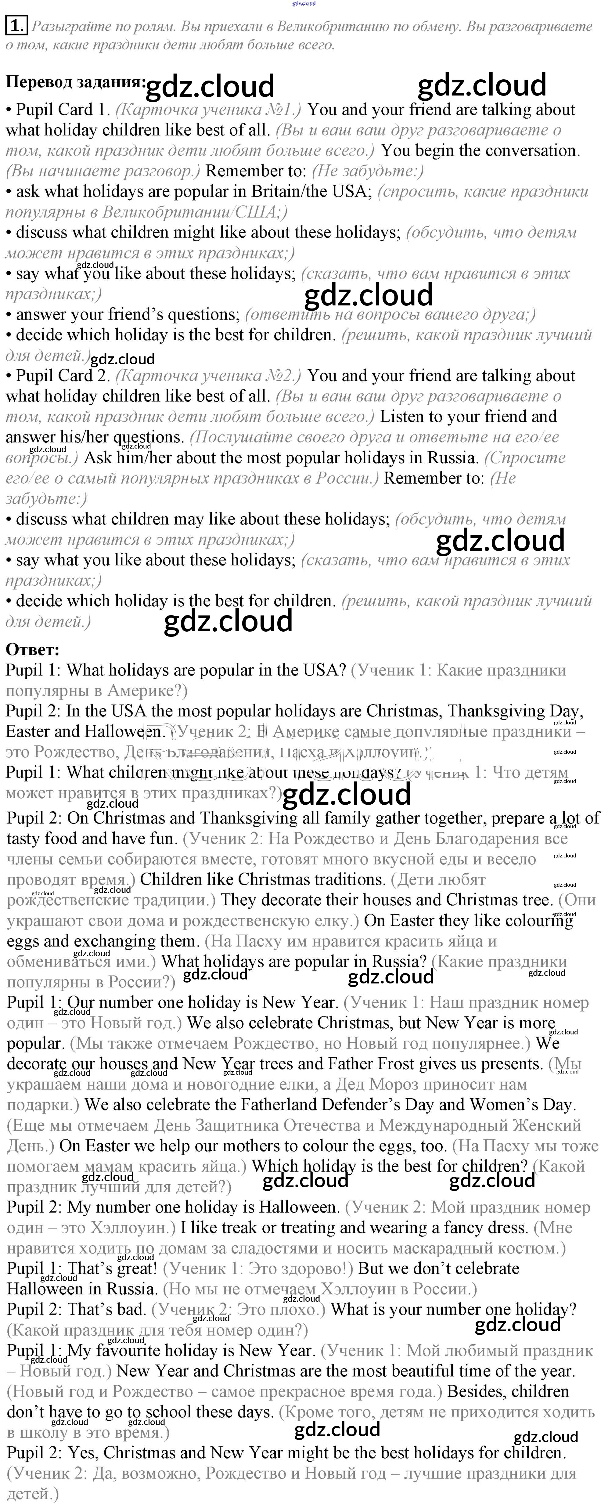 Ответ на задание 1 Учебник Английский язык за 5 (пятый) класс Кузовлев, Лапа, Костина, Дуванова, Кузнецова УМК 2015