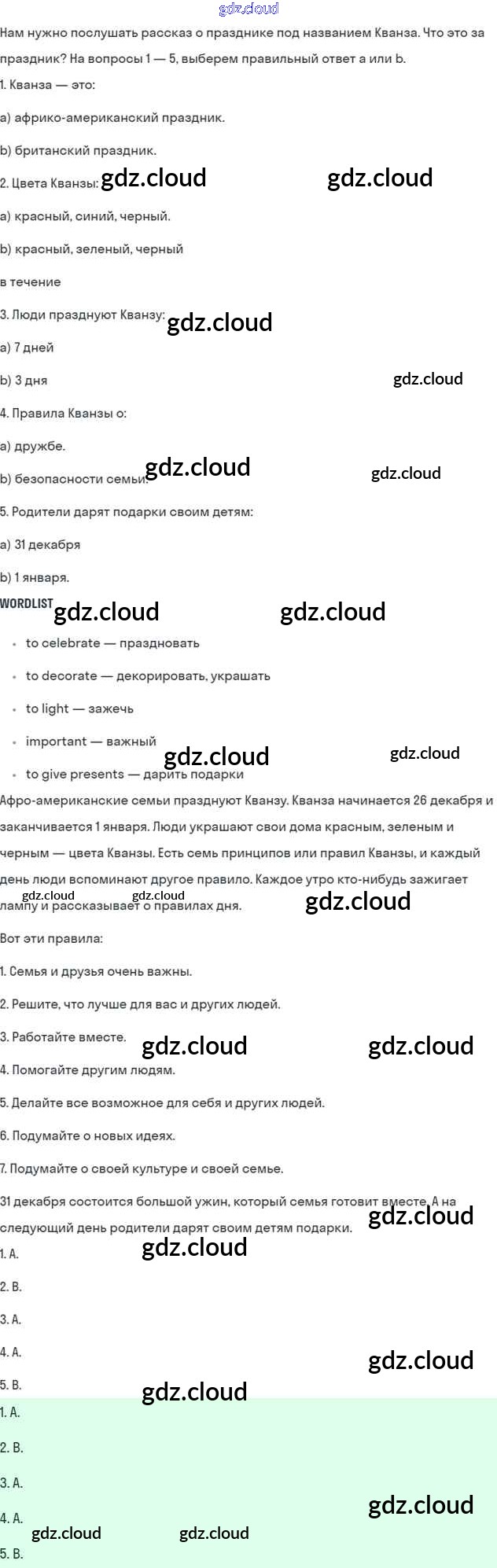 Lesson 7-8. Test yourself Ответы к Unit 5. My favourite celebrations по Английскому языку 5 класс Учебник Кузовлев УМК Просвещение