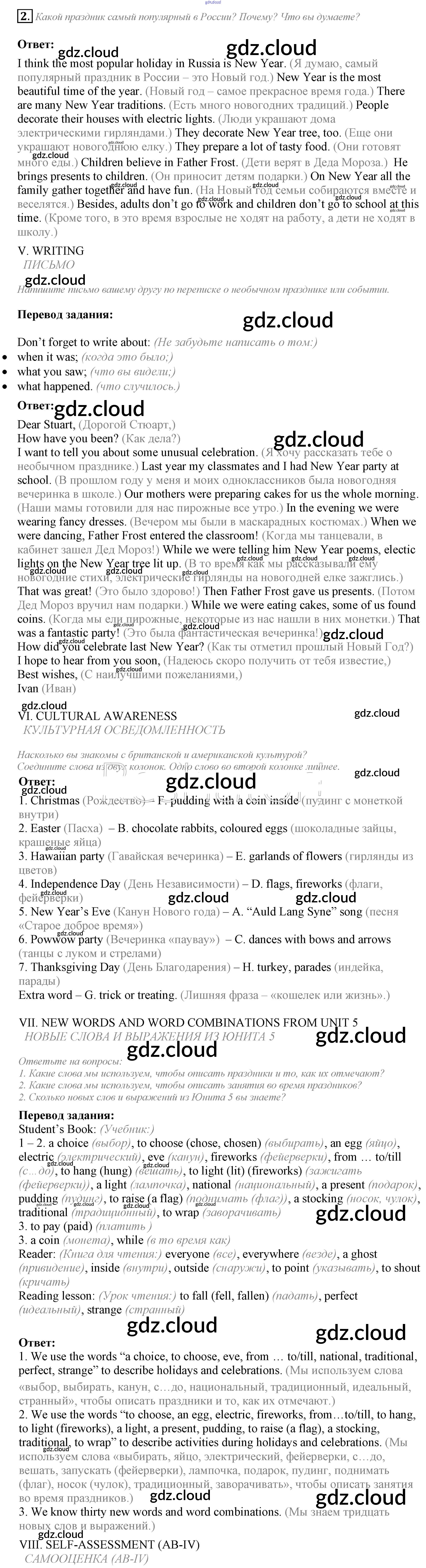 Lesson 7-8. Test yourself Ответы к Unit 5. My favourite celebrations по Английскому языку 5 класс Учебник Кузовлев УМК Просвещение