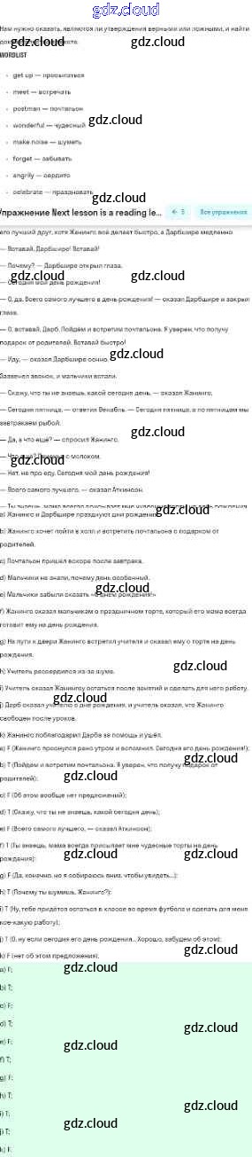 Reading lesson Ответы к Unit 4. Every day and at weekends по Английскому языку 5 класс Учебник Кузовлев УМК Просвещение