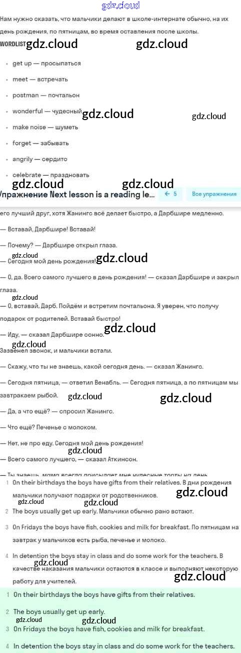 Reading lesson Ответы к Unit 4. Every day and at weekends по Английскому языку 5 класс Учебник Кузовлев УМК Просвещение