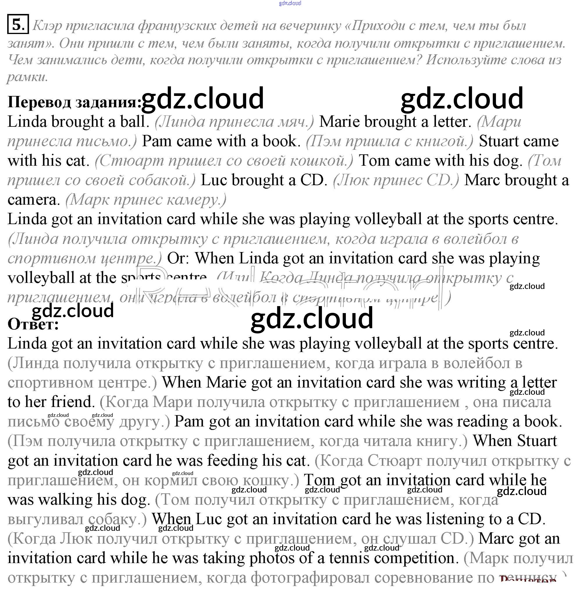 Ответ на задание 5 Учебник Английский язык за 5 (пятый) класс Кузовлев, Лапа, Костина, Дуванова, Кузнецова УМК 2015